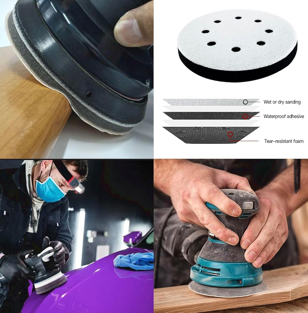إسفنجة عالية الجودة: هذه الوسائد الإسفنجية للصنفرة الدائرية مصنوعة من إسفنجة عالية الجودة ومتينة، تقلل من الاهتزاز عند صنفرة الأسطح المنحنية وغير المنتظمة