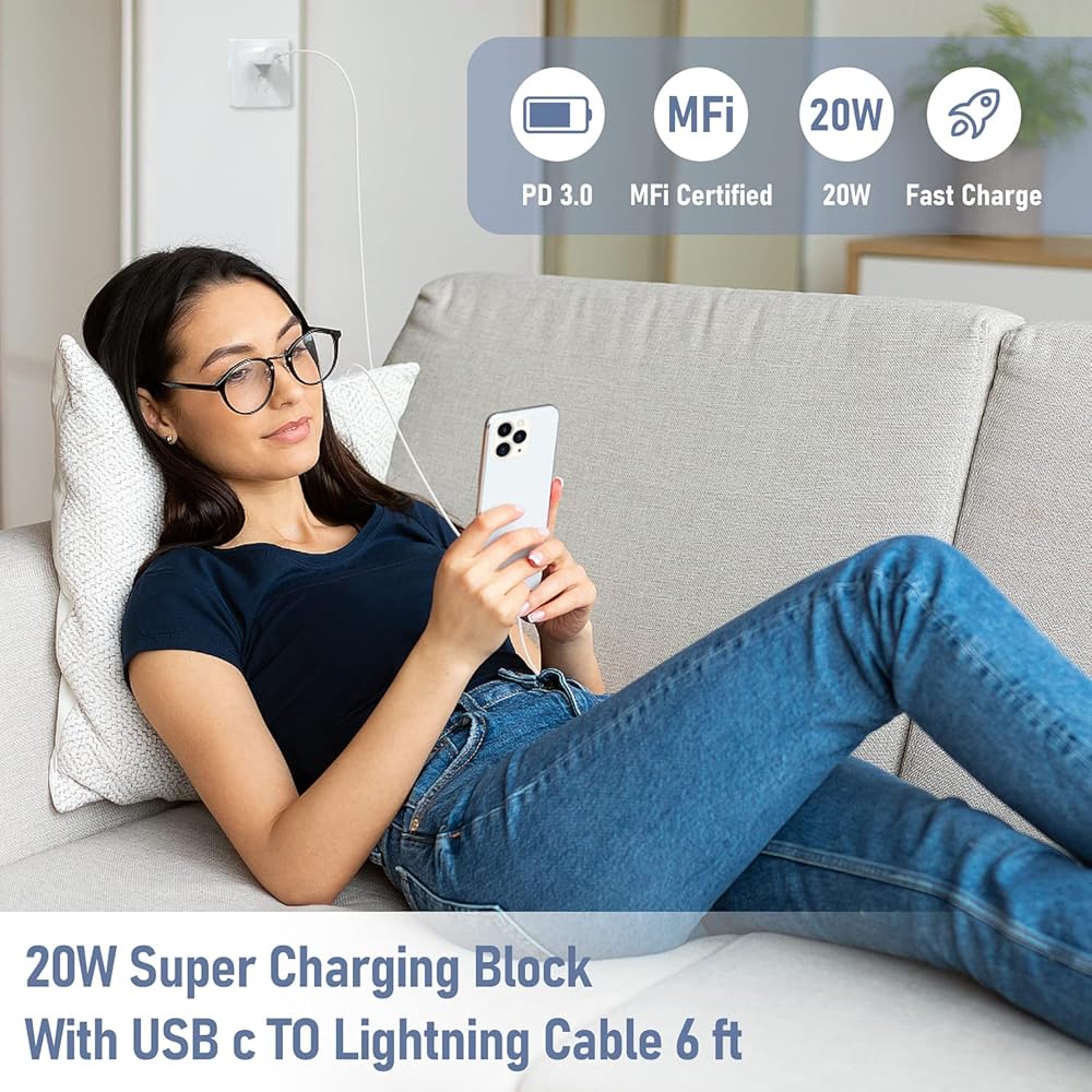 • التوافق العالمي: التوافق مع iPhone 14/14 Pro/13/13 Mini/13 Pro/13 Pro Max/12/12 Mini/12 Pro/12 Pro Max/SE 2020/11/11 Pro/11 Pro، لأجهزة iPad. هذا الشاحن السريع 20 USB يشحن أيضًا الهاتف 7 6 Plus، 5 5c 5s SE بسرعة الشحن الأصلية