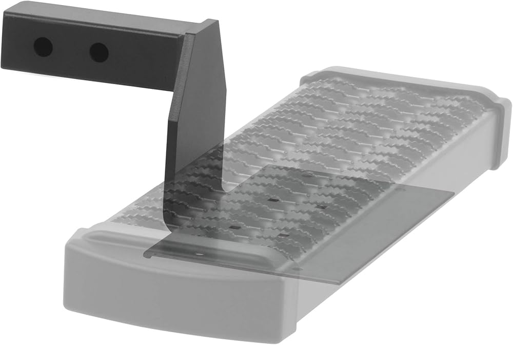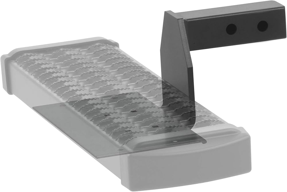 The Grip Step receiver hitch step provides a convenient stepping surface on the front or rear of the vehicle. It installs using the receiver tube opening and can be attached or detached as needed. This receiver hitch mount securely attaches to the Grip Step receiver hitch step and allows it be mounted on a 2" x 2" receiver tube opening (fits most 2" receivers; may not be compatible with certain receiver adapters). It features a 6" drop to give the step added clearance from the rear bumper or spare tire. It also includes all necessary mounting hardware for attaching the step and comes with a hitch pin. NOTE: This package includes the receiver mount only. The Grip Step receiver hitch step #415026 is required to complete the assembly.
