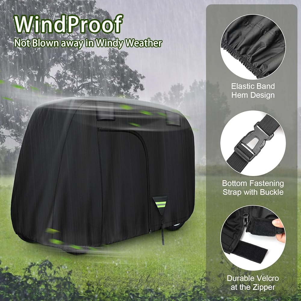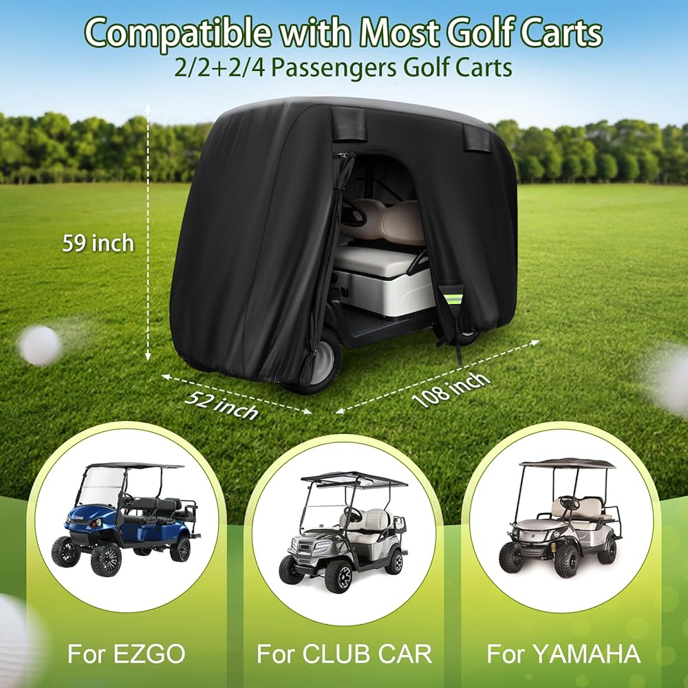 🛺【يناسب نماذج متعددة وحجم كبير】 غطاء عربة الجولف المقاوم للماء من YOREPEK يناسب معظم العلامات التجارية لعربات الجولف، متوافق مع EZGO، CLUB CAR، YAMAHA 2/2+2/4 عربات جولف الركاب، وبسبب أبعاده الكبيرة (108 بوصة طول) *52 بوصة عرض * 59 بوصة ارتفاع)، غطاء المطر لعربة الجولف هذا 4 ركاب يناسب حتى نماذج السقف الطويلة بسهولة. يمكن أن يصبح ملحق عربة الجولف هذا المتوافق مع EZGO حاميًا خارجيًا لعربة الجولف الخاصة بك!