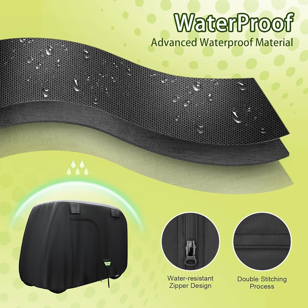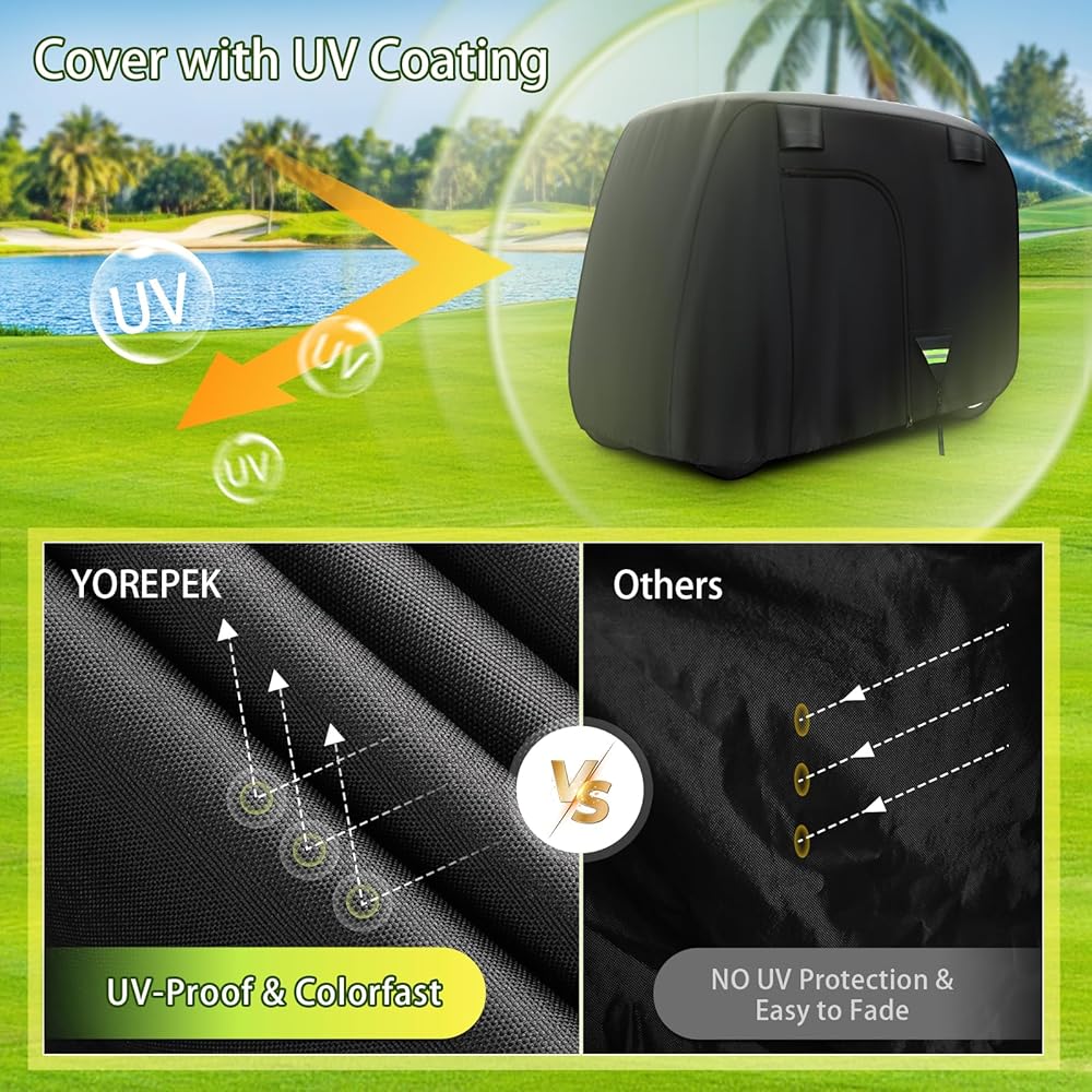 💯【مادة شديدة التحمل 600D】 مادة غطاء سيارة الجولف YOREPEK مصنوعة من ألياف البوليستر 600D. بالمقارنة مع مادة 400D، فإن الغطاء الواقي لعربة الجولف أكثر سمكًا ويشعر بالقوة الكافية للتعامل مع غطاء عربة الجولف الذي تمزقه الرياح. بفضل مادة 600D عالية الجودة، فهي أكثر صلابة مع عمر خدمة أطول ولن تتشقق بعد فترة طويلة من الزمن.