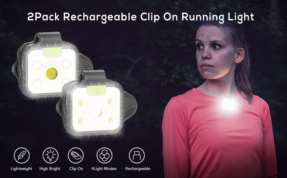 ضوء الجري، 2 حزمة من مصابيح الجري LED للعدائين، 4 أوضاع إضاءة يتم تثبيتها على ضوء الجري مع بطارية قابلة لإعادة الشحن، ضوء أمان خفيف الوزن للجري والركض والتخييم والمشي لمسافات طويلة والمغامرة في الهواء الطلق