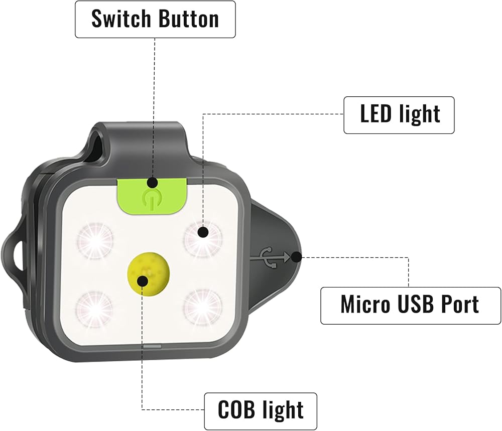 🏃♂️【سطوع عالٍ】يحتوي هذا المشبك القوي على ضوء الجري على 4 خرزات LED وخرزة COB واحدة. يولد شعاعًا رائعًا وطويل الأمد من ضوء LED مع 150 لومن في وضع الإضاءة العالية.
