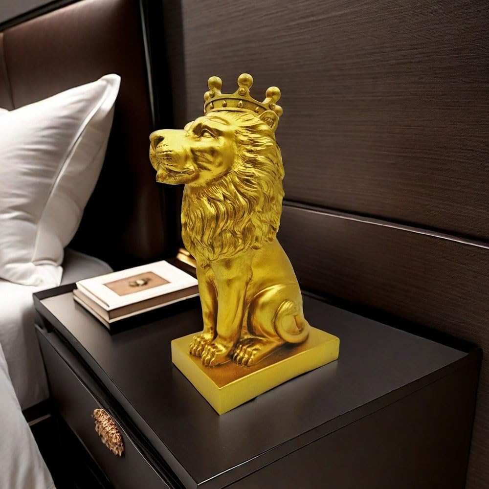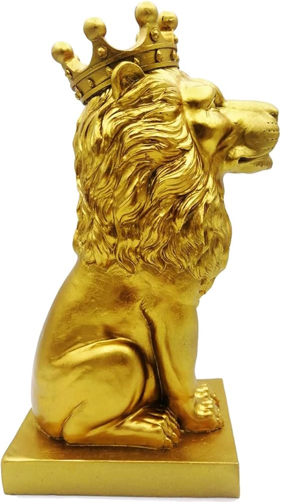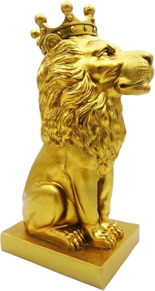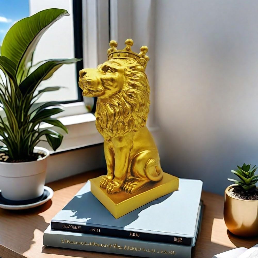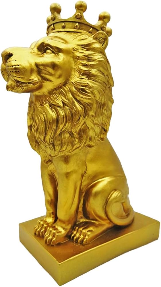 تمثال الأسد الذهبي مقاس 12 بوصة مع تاج على الطراز الشمالي لتزيين المنزل والدراسة، تماثيل الأسد القابلة للتجميع أفضل هدية للرجل