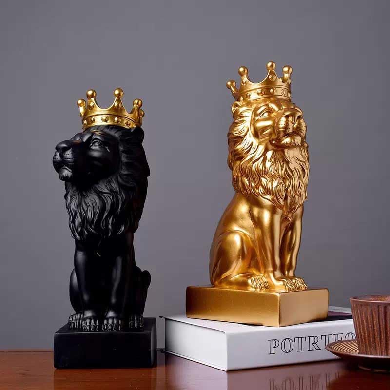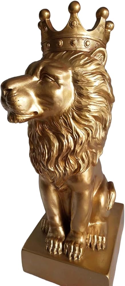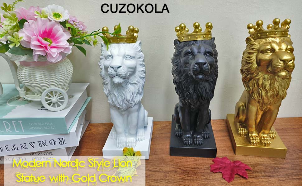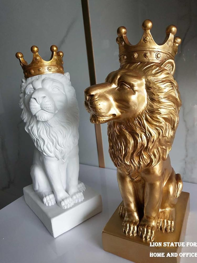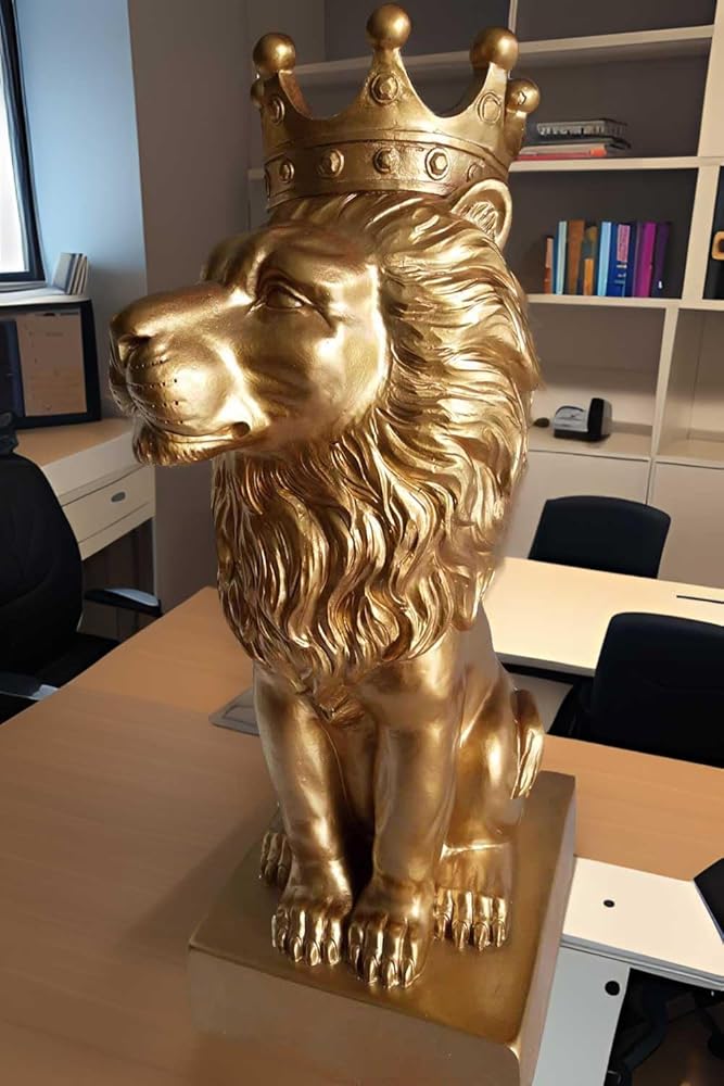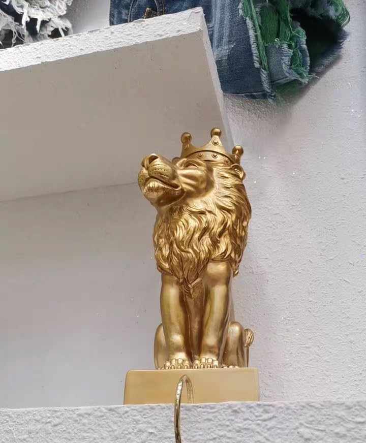 تمثال الأسد الذهبي مقاس 12 بوصة مع تاج على الطراز الشمالي لتزيين المنزل والدراسة، تماثيل الأسد القابلة للتجميع أفضل هدية للرجل