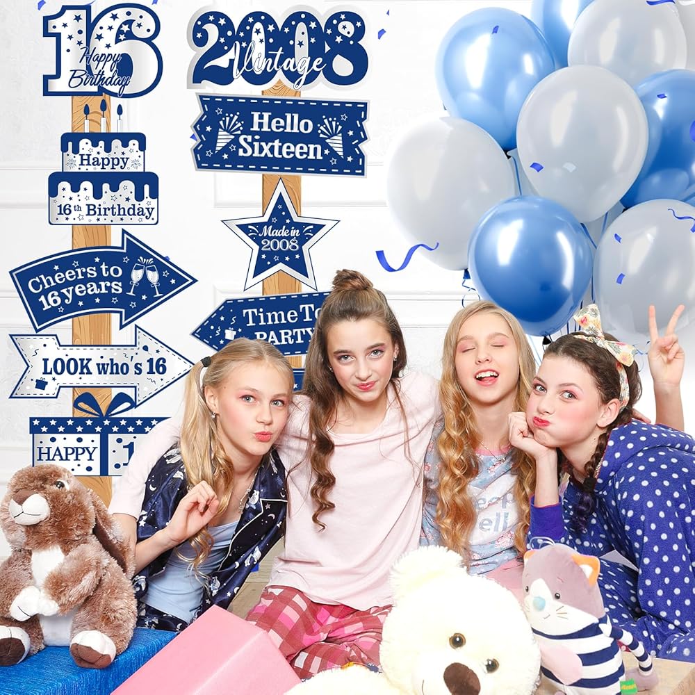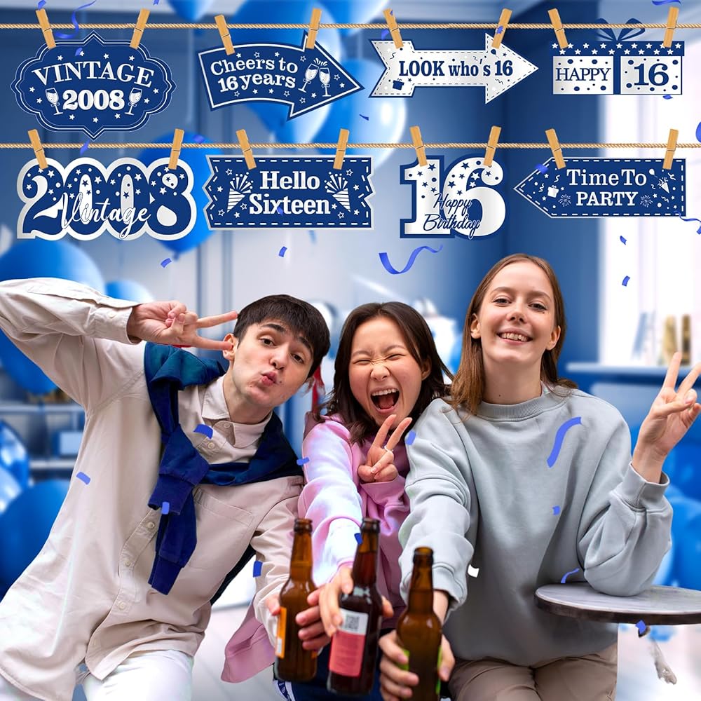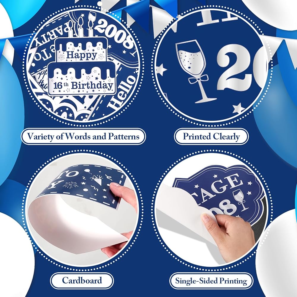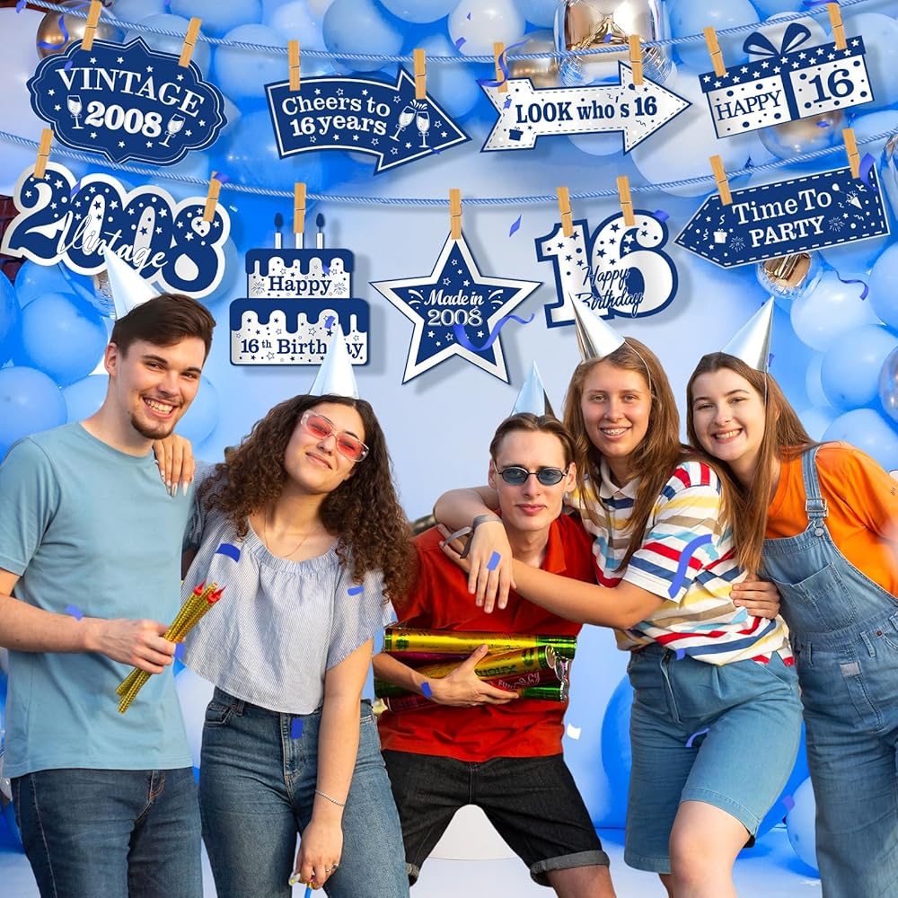 🎊【Applications】The blue vntage 2008 birthday decorations for boys and girls can be decorated in the garden, yard, lawn, door, window, wall, and anywhere you want to hang some decor. If you want to a surprise party, our blue silver 16th birthday decorations are the perfect addition to a boy's 16th birthday party.