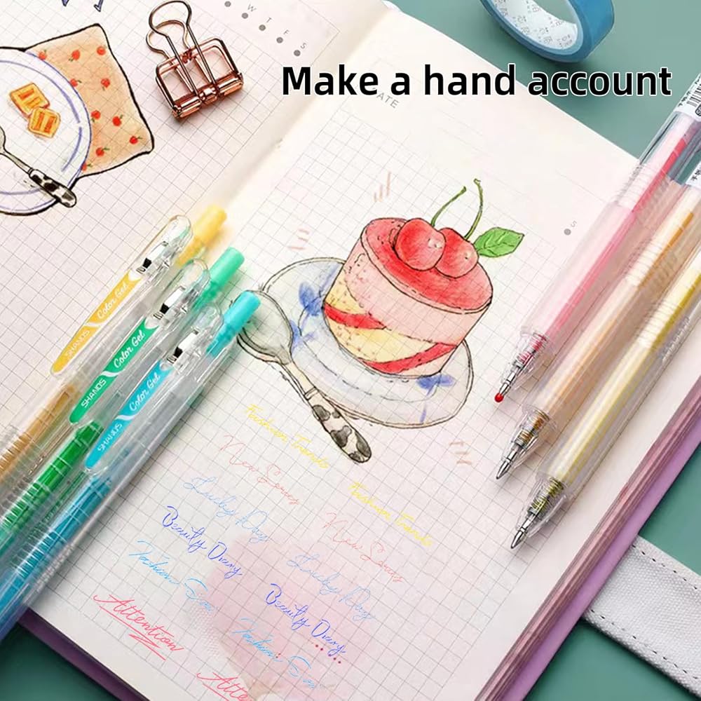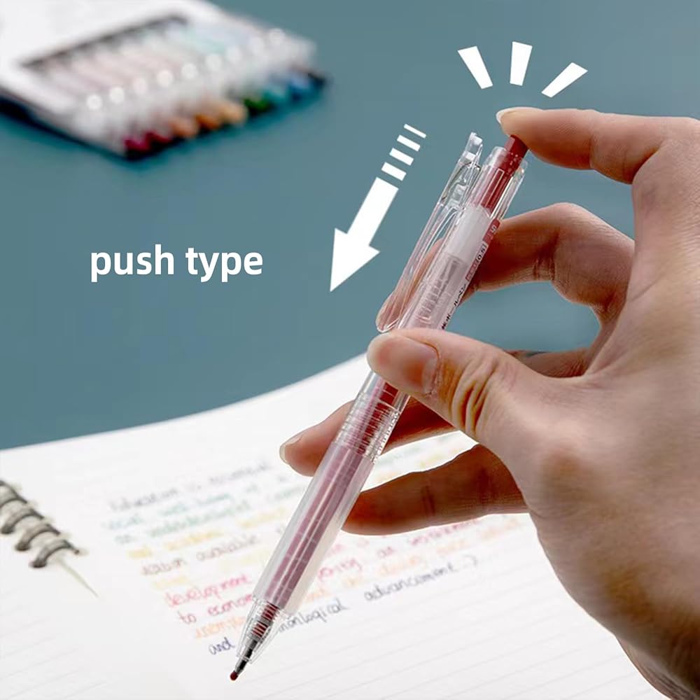 🌈تصميم عصري وعملي: يتميز قلم الجل الملون مقاس 0.5 مم بألوان متعددة نابضة بالحياة، ومشبك قلم بزاوية واسعة، وطرف مزدوج من الفولاذ المقاوم للصدأ على شكل رصاصة من أجل المتانة والكتابة السلسة. يسمح لك الغلاف الشفاف بمراقبة مستويات الحبر بسهولة، بينما يوفر تصميمه خفيف الوزن والحبر الهلامي الراحة