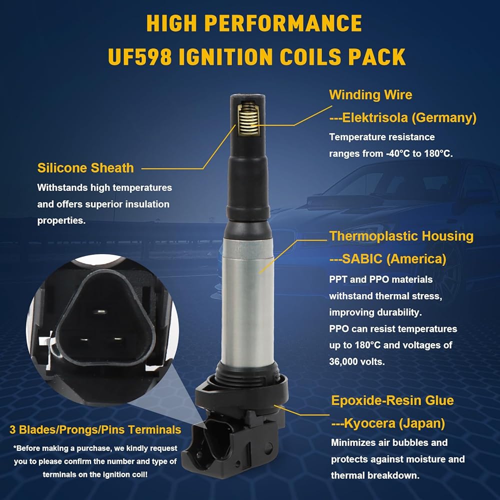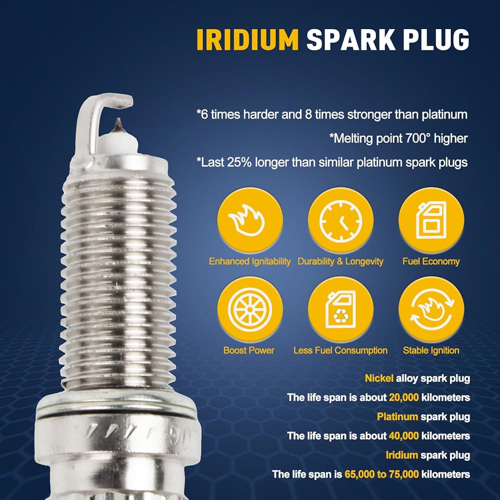 Direct OEM design ignition coils and spark plugs, easy to install and fits for 3.5 liters 6 cylinders.