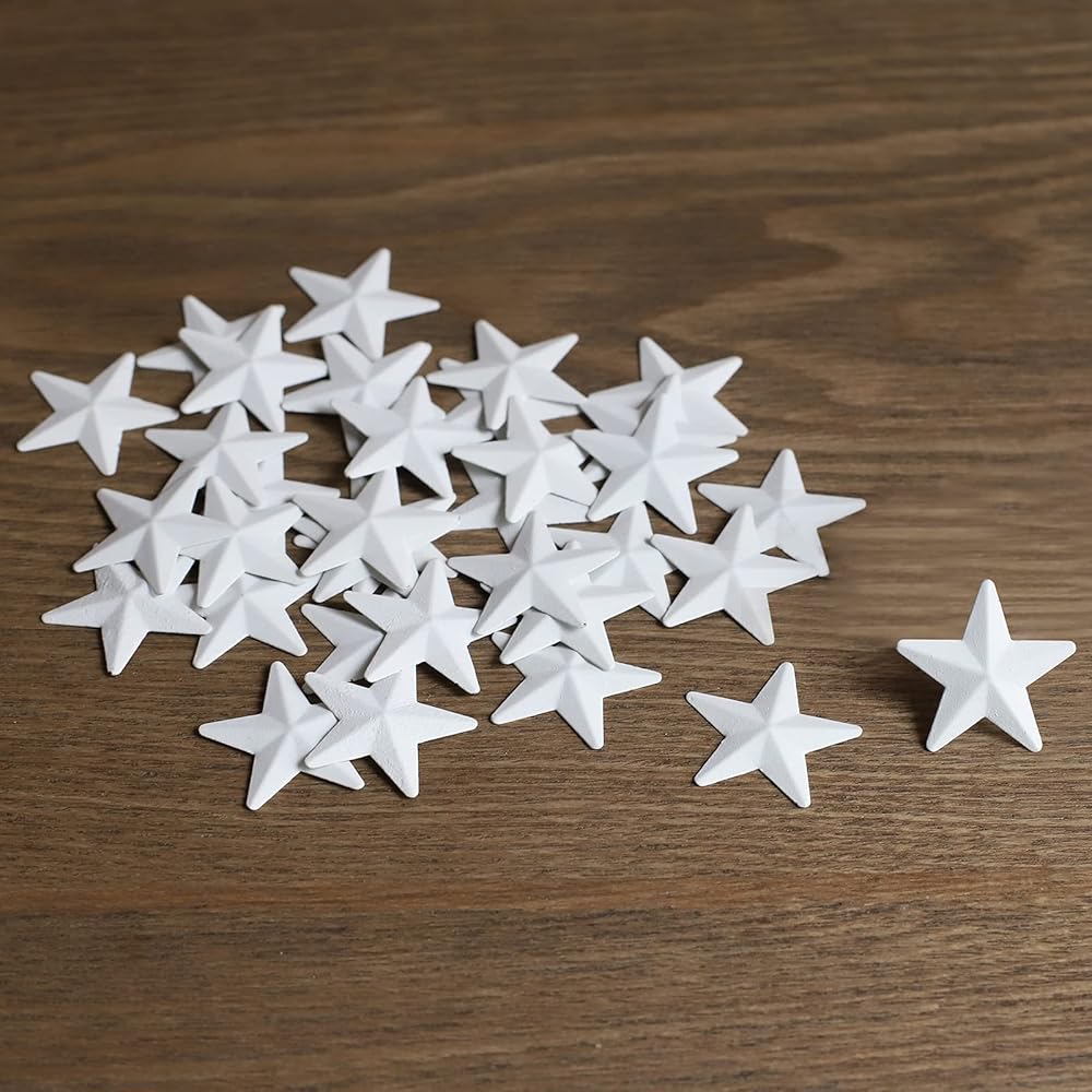 الأبعاد: مقاس 3.81 سم، 27 قطعة في المجموعة. يرجى ملاحظة: تم تكديس بعض نجوم الحظيرة في كومة عندما تحصل على العبوة، يرجى فصلها.