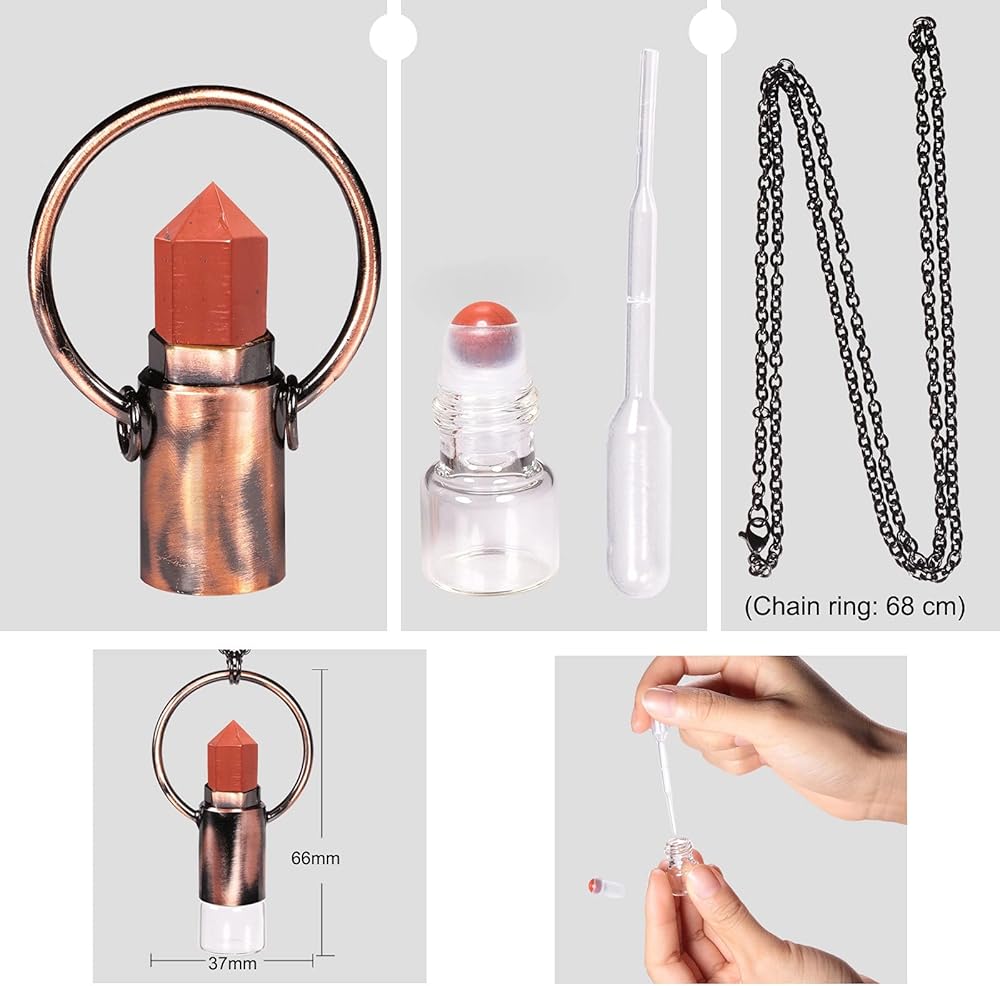 • قلادة زجاجة عطر حجرية متعددة الوظائف: إنها مجموعة مجوهرات رائعة، وعندما ترتديها كقلادة جميلة، ستجعلك أكثر سحرًا. بالإضافة إلى ذلك، يمكنك فك الزجاجة من القلادة، وإضافة العطر المفضل لديك أو الزيت العطري، ثم استخدام الكرة الدوارة الكريستالية لوضعها في أي وقت، وعندما تغلق غطاء الزجاجة، سينبعث العطر أيضًا من الزجاجة. مما سيخفف من التوتر ويجلب لك مزاجًا جيدًا.
