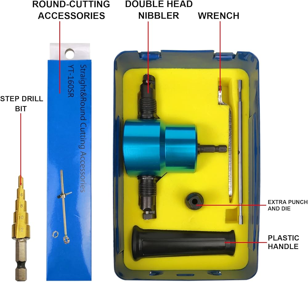 【رأس مزدوج】 تصميم الرأس المزدوج للقضم أقوى وأكثر قوة من الرأس الواحد، ويأتي مع مجموعة إضافية من الثقب والقوالب، مما يطيل عمر الخدمة بفعالية.