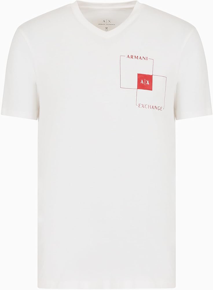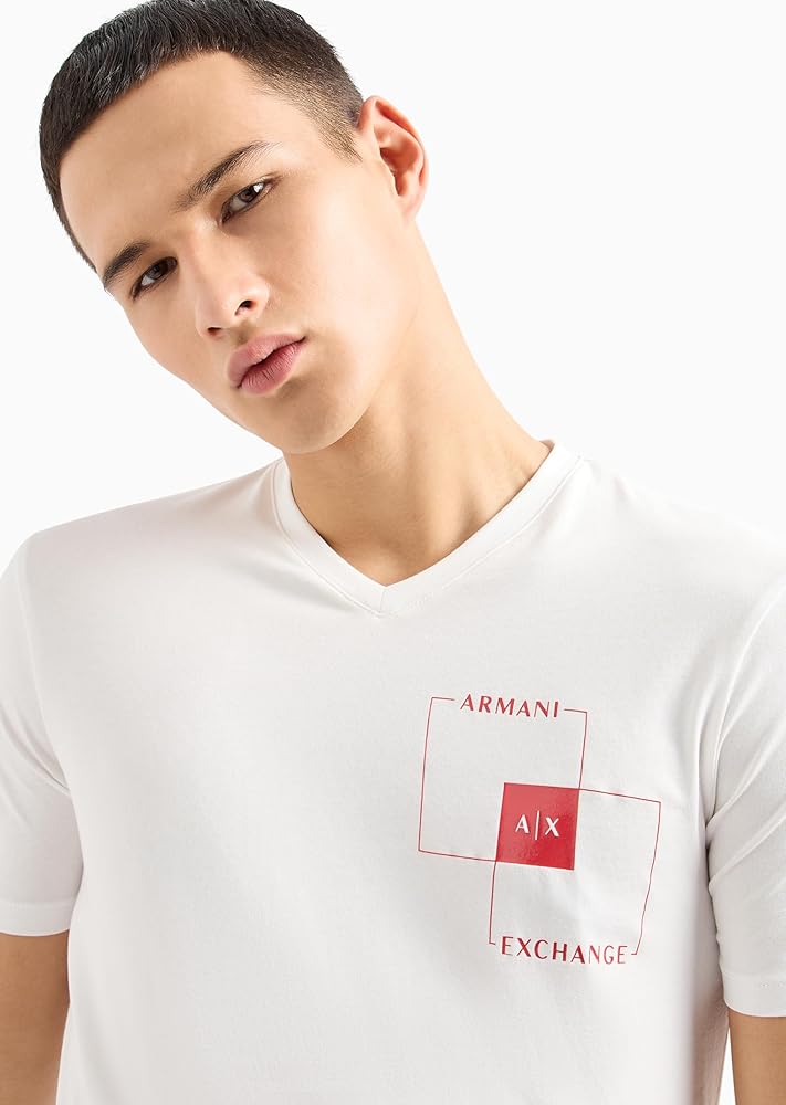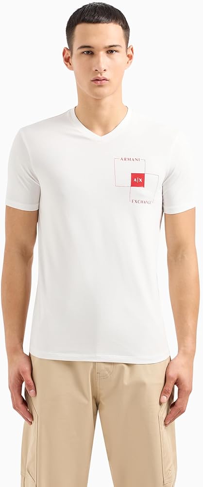This A|X Armani Exchange Tee Shirt has a slim fit and V neckline while featuring a small AX box graphic.