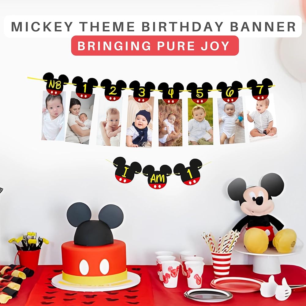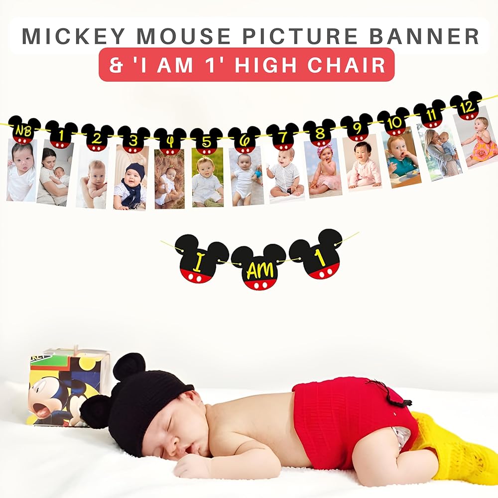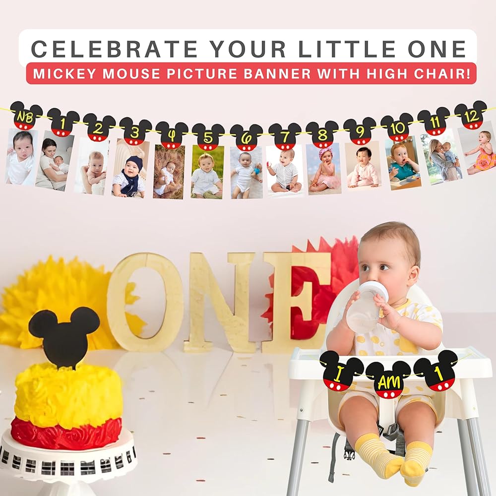 ✔️نادي ميكي ماوس: تحتوي لافتة صور ميكي ماوس ذات المظهر الأنيق على 13 حامل صورة لحديثي الولادة حتى عمر 12 شهرًا، لافتة صور ميكي ماوس مع الكرسي العالي "I AM 1" ستكون مثالية لديكورات عيد ميلاد طفلك الأول وعيد ميلاد ميكي ماوس الأول للطفل. حفلة عيد ميلاد تحت عنوان الحفلة وميكي ماوس، نادي ميكي ماوس، حفلة ميكي ماوس!