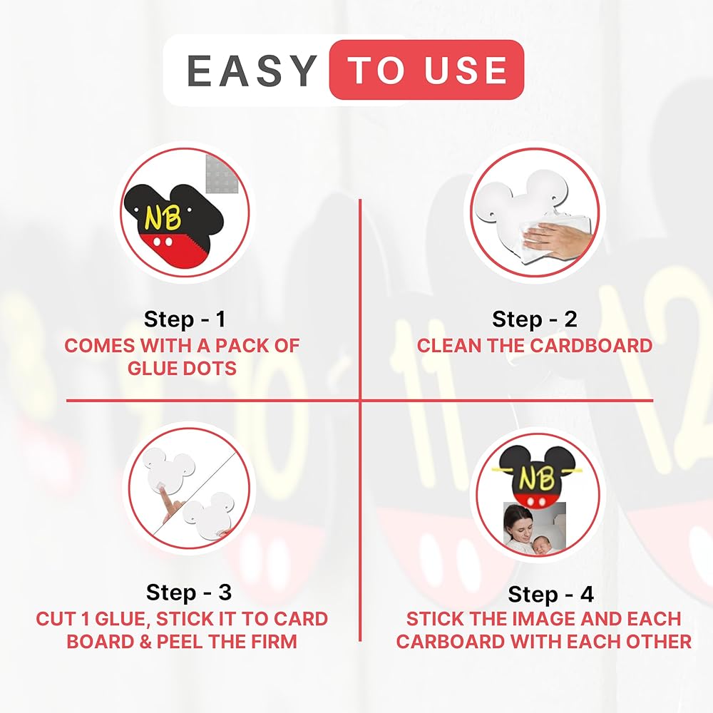 ✔️جاهزة للاستخدام: لافتات عيد الميلاد الأول ميكي هذه مجمعة بالكامل وجاهزة للاستخدام في عيد ميلاد طفلك الأول ميكي ماوس. تحتاج فقط إلى إرفاق الصور بنقاط الصمغ (متضمنة) وتعليقها، مما يوفر وقتك في تزيين حفلة عيد ميلاد طفلك الأول.