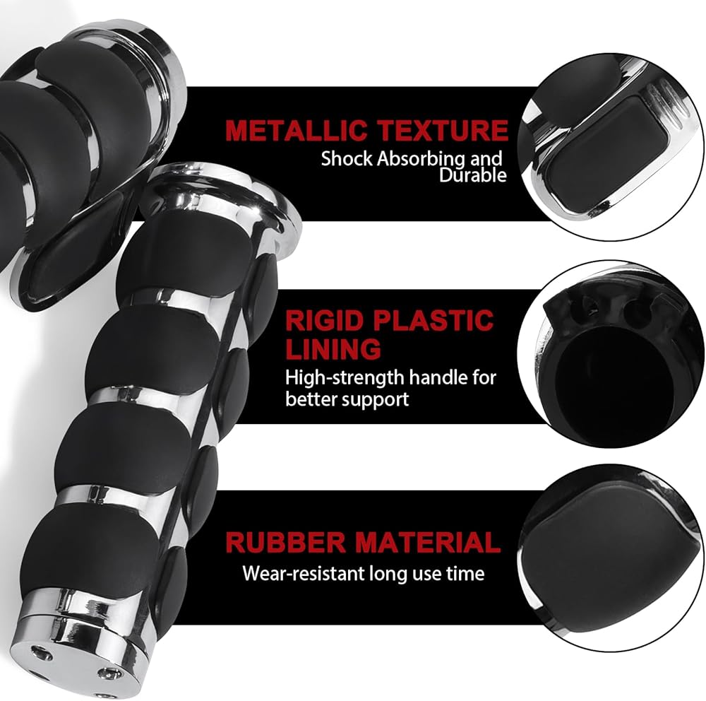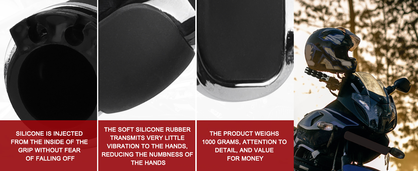 سهل التركيب: عندما يتشقق المقبض أو يتمزق أو يصبح فضفاضًا، يمكنك استبداله بمقبض جديد تمامًا، والذي يمكن تركيبه في دقائق معدودة ويمكنك الاستمتاع بالشعور اللطيف بالمقبض، مما يوفر التعامل بشكل أفضل مع الدراجة النارية
