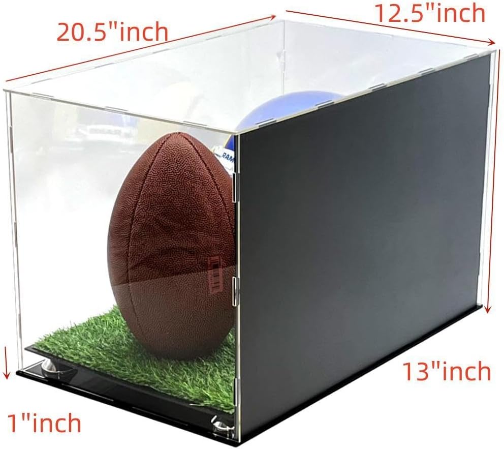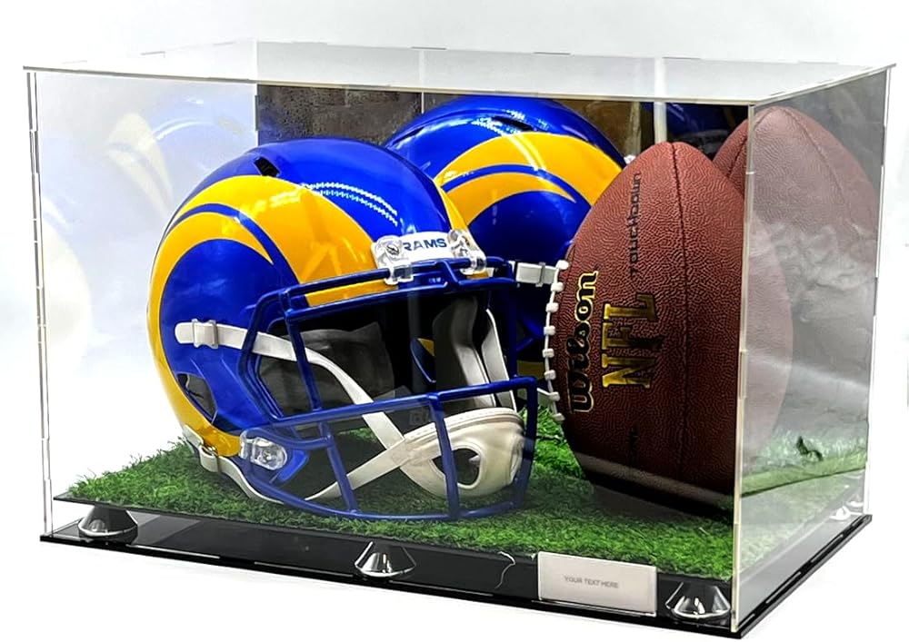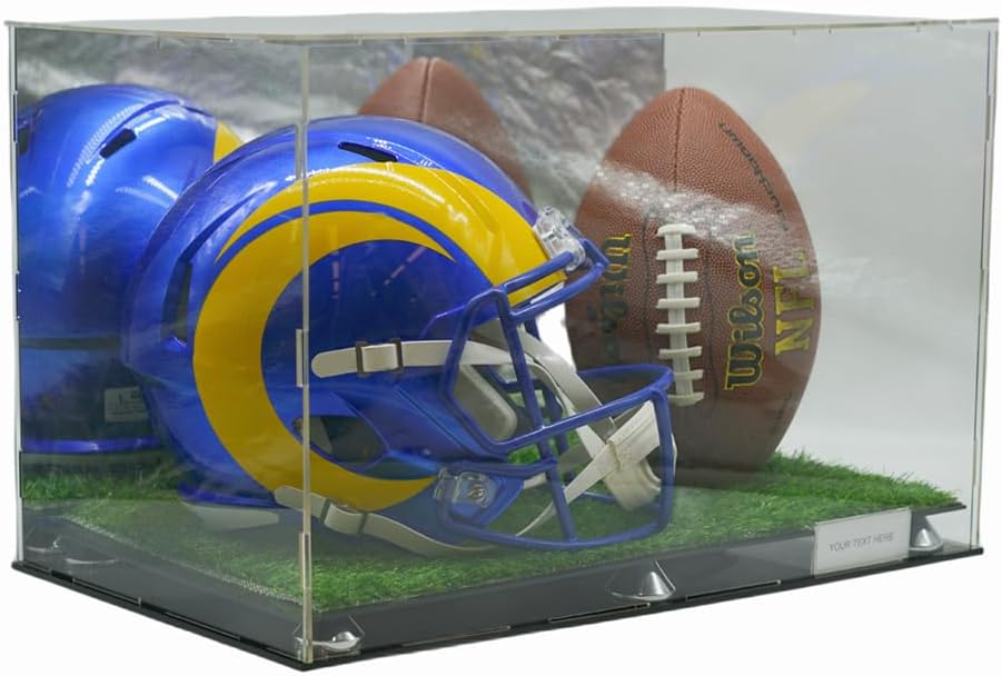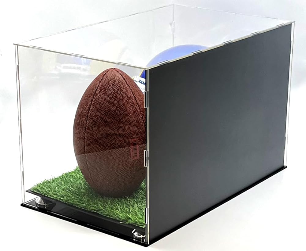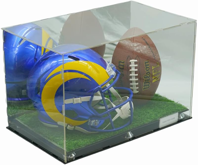 • Football Helmet & Ball Acrylic Display Case Box Mirror Artifical Grass Turf 2 Level Riser Showcase Shoes UV Protection