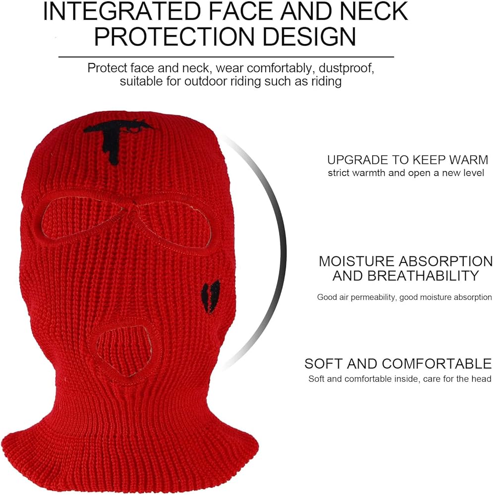 3 Holes Knit Full Face Cover Hat for Men Women, Winter Thermal Helmet Liner Cycling Head Cover, Balaclava Ski Mask for Sports