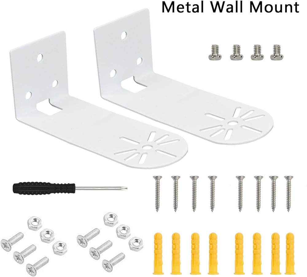 Unique L-shaped Mount: 2 x camera wall brackets, 1 x screwdriver, 4 x 1/4 Thread Screws, 8 x wall screws, 8 x wall plugs, 6 x screws, 6 x screw nuts. If you have any questions, please feel free to contact us.