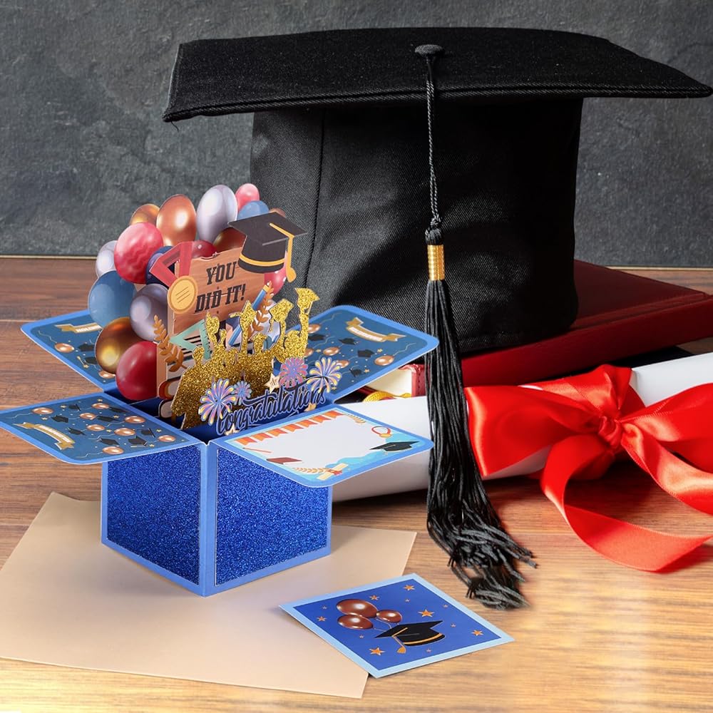 - Features a suprise box to celebrate the big day inside the graduation greeting card when open it.