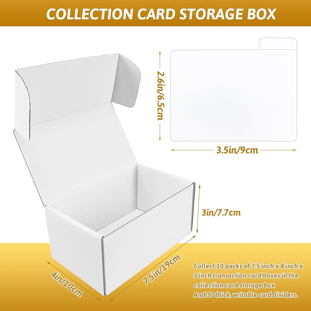 تخزين بطاقات التداول: سوف تحصل على 10 عبوات من صناديق بطاقات التداول مقاس 7.5 بوصة × 4 بوصة × 3 بوصة و30 قطعة من فواصل البطاقات السميكة والقابلة للكتابة. يمكن لكل صندوق تخزين للبطاقات الرياضية أن يحمل حوالي 600 بطاقة تداول قياسية 20 نقطة وحوالي 850 بطاقة ألعاب قابلة للتحصيل تعتبر حقيبة تخزين بطاقات التجميع رائعة لتخزين بطاقاتك وحمايتها، كما أنها تساعد بشكل كبير عند تنظيمها والعثور عليها