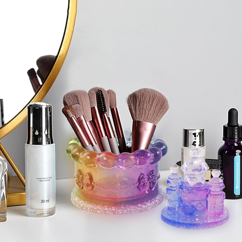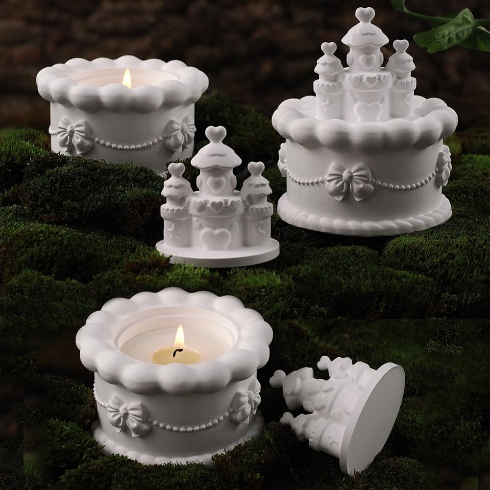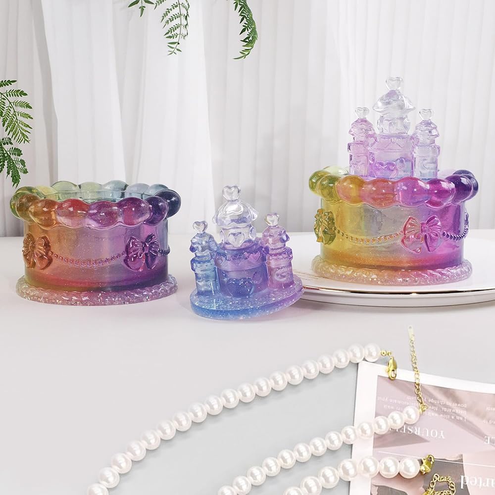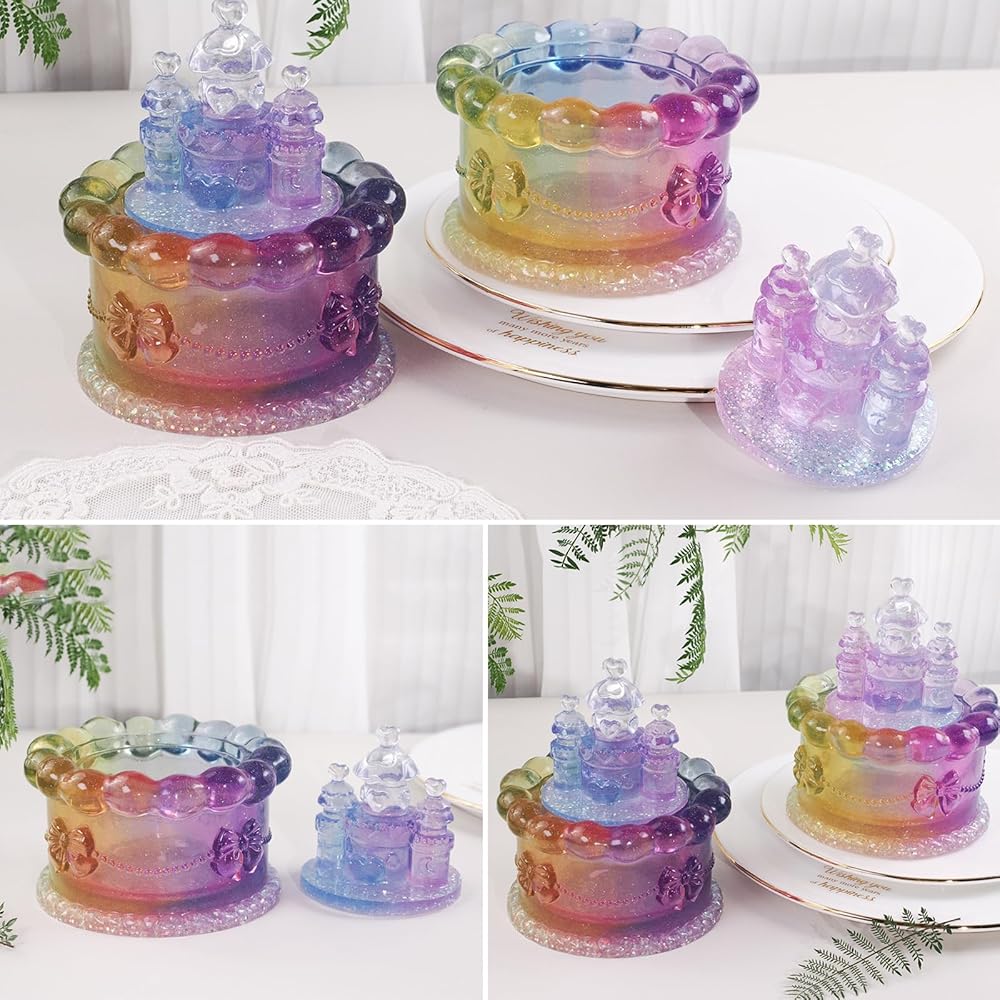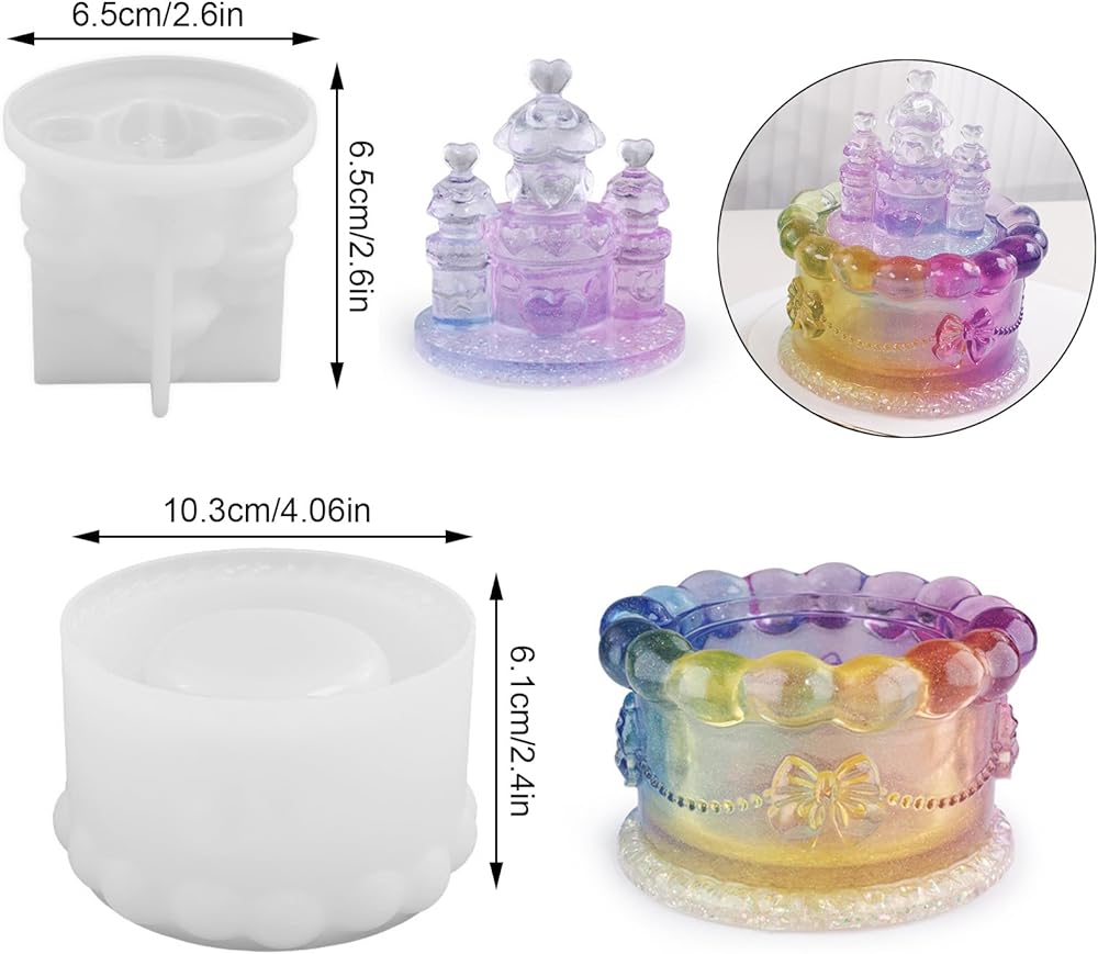 Voaesdk Storage Box Resin Mold with Lid, Cake Shaped Jar Silicone Mold, Cake Castle Resin Jar Mold for Epoxy Resin, DIY Jewelry Trinket Candy Container Candle Holder Home Decor Organizer Gift