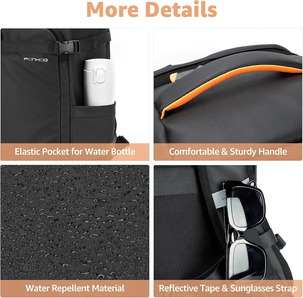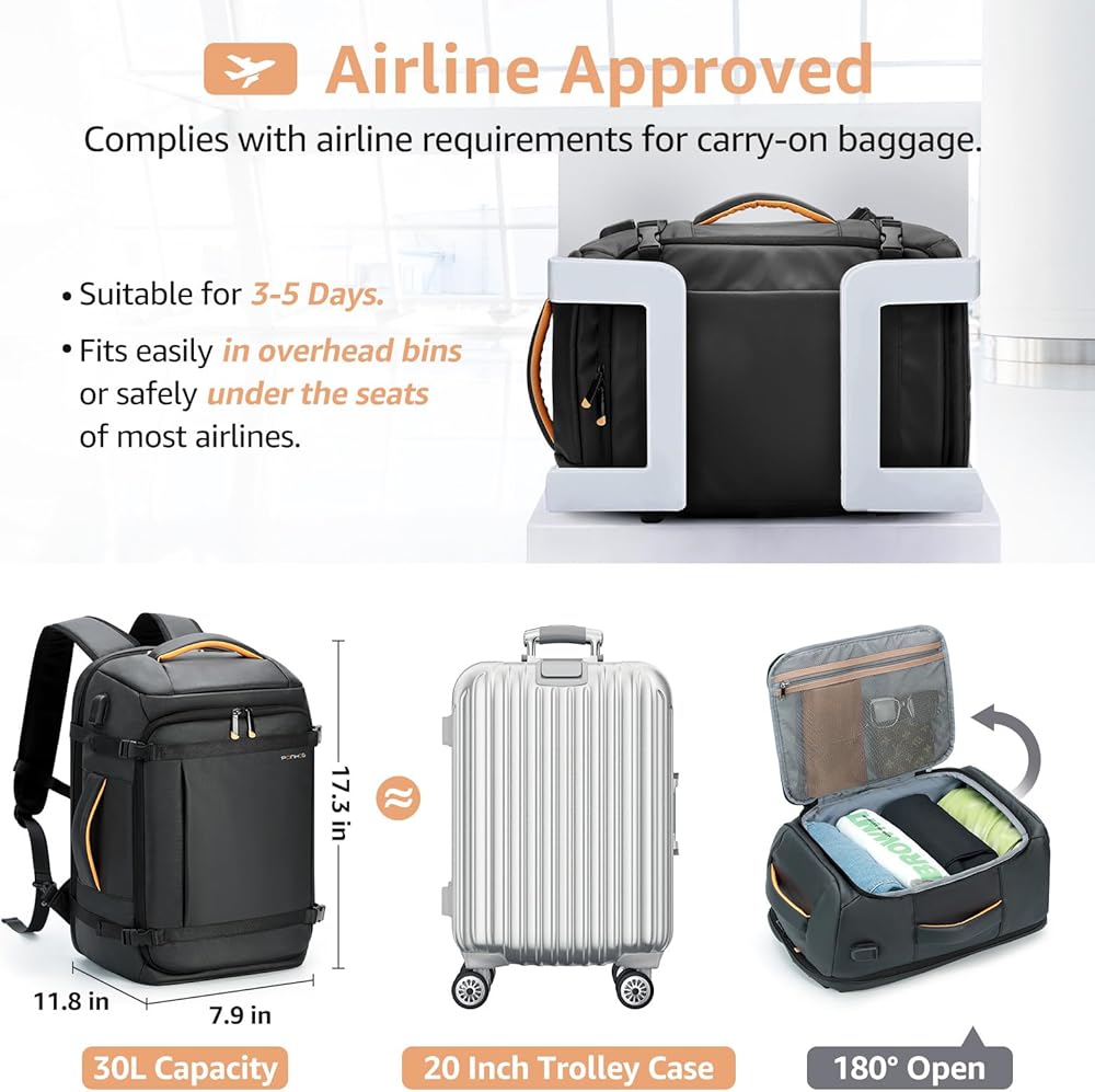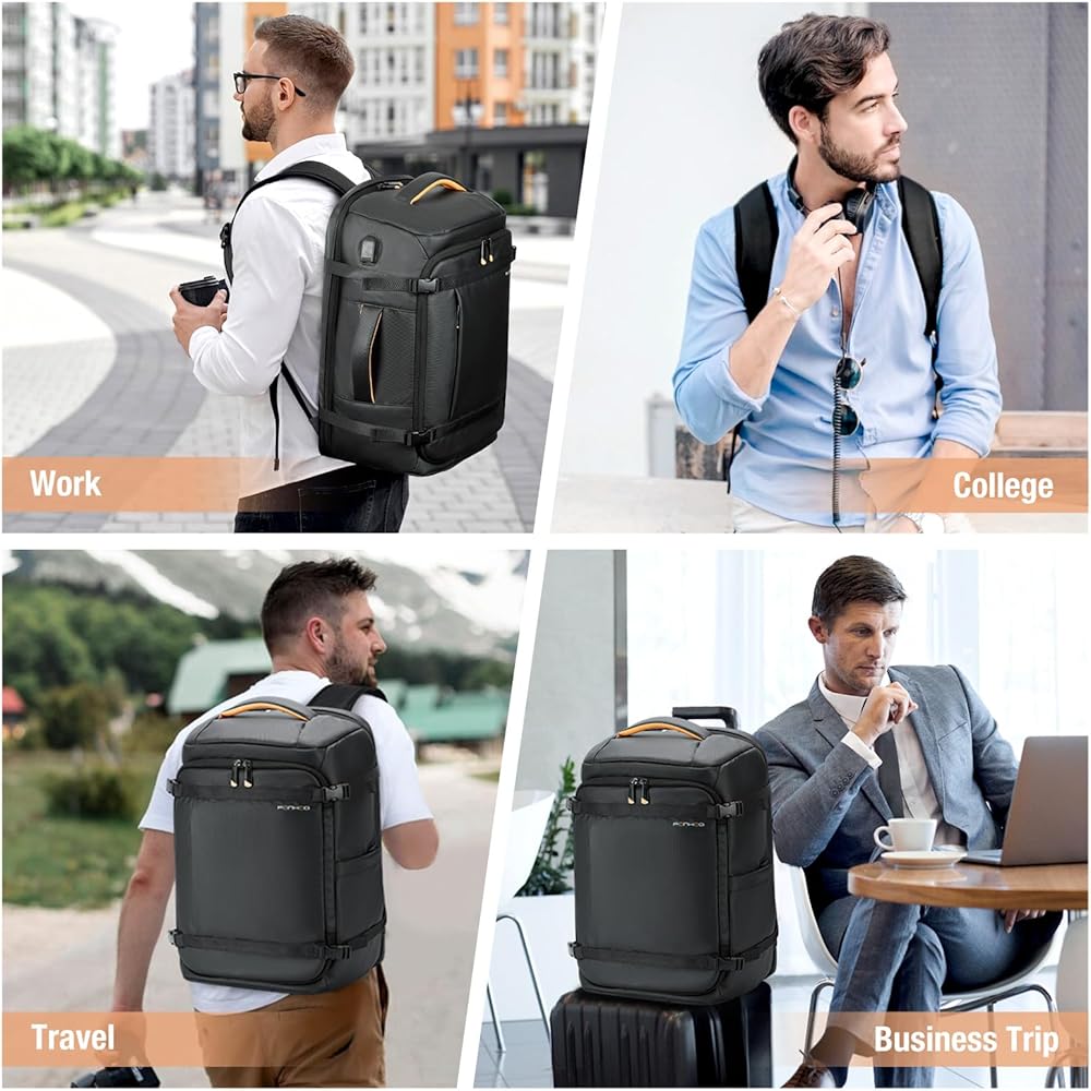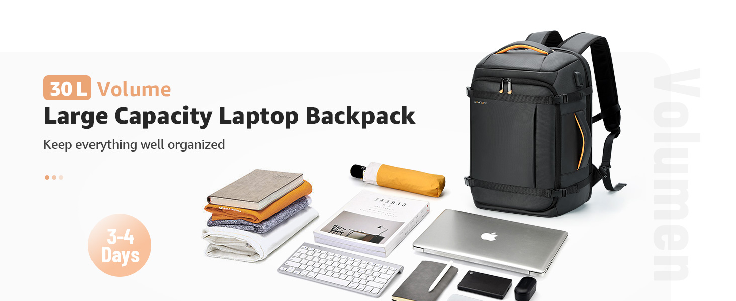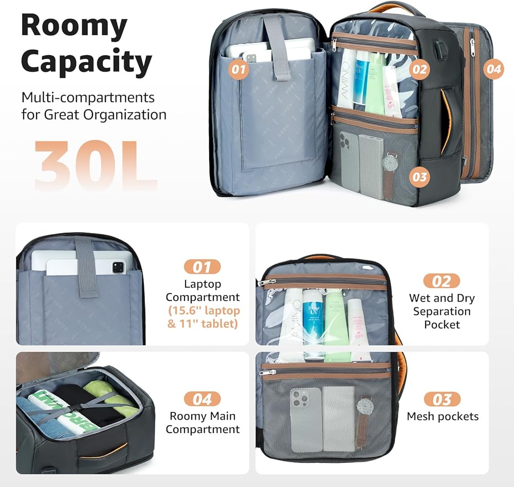 ✈سعة وأقسام واسعة: تحتوي حقيبة ظهر الكمبيوتر المحمول هذه بسعة 35 لتر على مساحات تخزين متعددة لتلبية احتياجات السفر من 3 إلى 5 أيام عمل. تمتلئ حجرة الكمبيوتر المحمول برغوة EVA لتوفير أفضل حماية لجهاز الكمبيوتر المحمول وiPad مقاس 15.6 بوصة، وحقيبة الفصل الجافة والرطبة مخصصة لتخزين العناصر الرطبة، وتحتوي الحجرة الأمامية على العديد من الجيوب للحفاظ على أغراضك الصغيرة منظمة وسهلة التخزين. وصول.