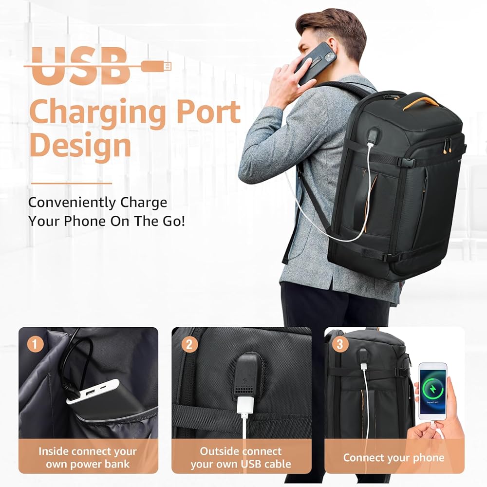 ✈منفذ شحن USB: تحتوي حقيبة ظهر العمل على شاحن USB مدمج في الخارج، مما يسمح لك بشحن هاتفك أثناء المشي. ومن الجدير بالذكر أن حقيبة الظهر لا تشتمل على بنك طاقة وكابل شحن USB، ولا يمكن تشغيلها بمفردها. تهدف هذه الميزة إلى توفير حل عملي للأشخاص الذين يسافرون بشكل متكرر ويحتاجون إلى إبقاء أجهزتهم الإلكترونية مشحونة.