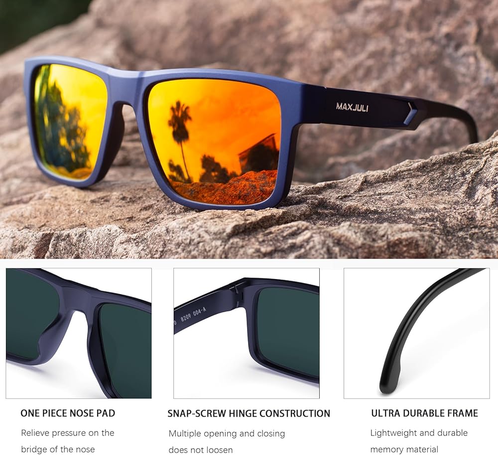 【عدسات مستقطبة عالية الوضوح UV400】 عدسات MAXJULI HD TAC المستقطبة يمكنها تصفية الوهج المنعكس من ضوء الشمس، عدسات مستقطبة فائقة الوضوح مصممة لرؤية حادة حتى أثناء السير على الطريق.