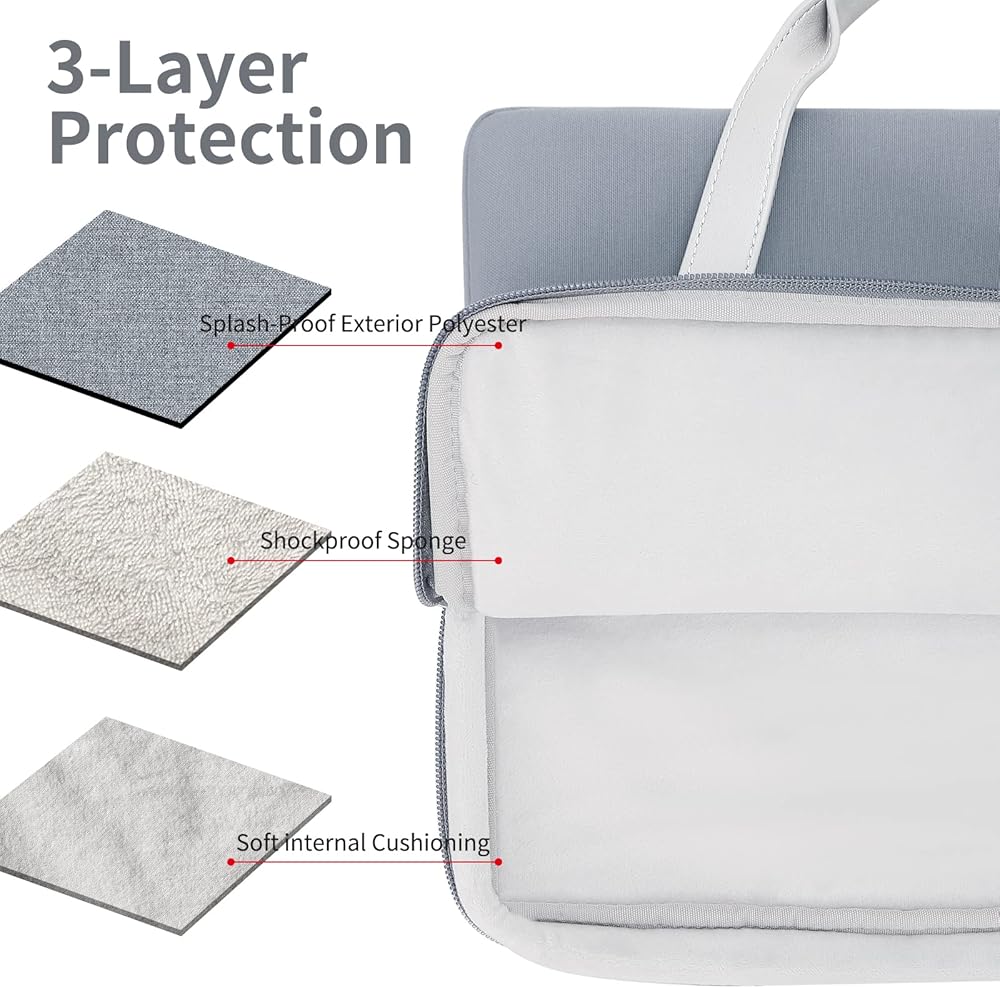 【تصميم فريد لحافظة الكمبيوتر المحمول】مع تصميم كتل الألوان، فهو مصنوع من جلد البولي يوريثان عالي الجودة ومادة ألياف البوليستر المقاومة للماء، مع صنعة متقنة، ومتينة وعصرية. توجد طبقة من الجيوب المزودة بسحاب في المقدمة مصممة لهاتفك ومحفظتك وسماعات الهواء وغيرها من الملحقات الصغيرة