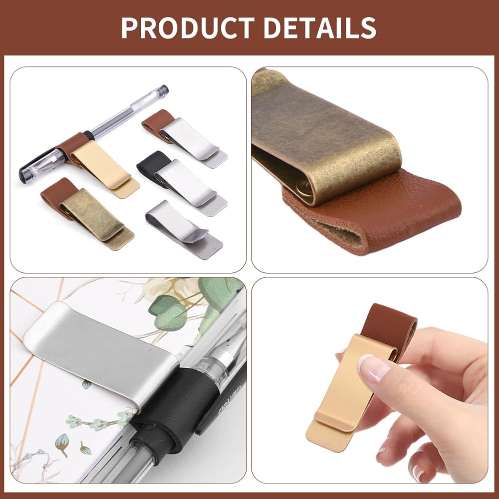 【PACKAGE CONTENT】There are 5 pen holders in different colors and styles in the package. They are made of metal and PU leather, durable and not easy to fade or break. The clip has a smooth surface that prevents snags and marks on paper.