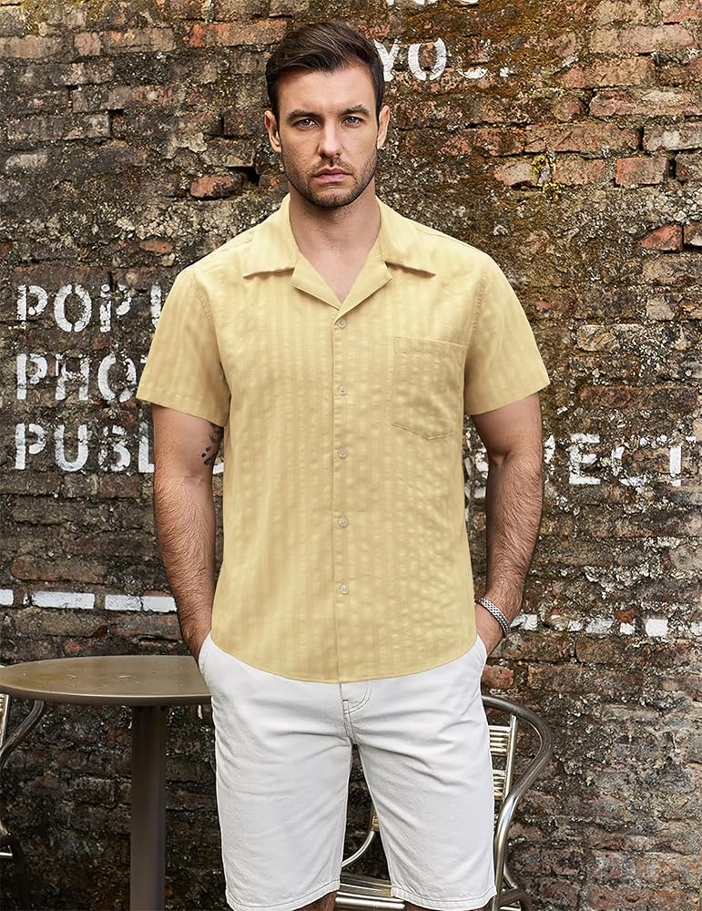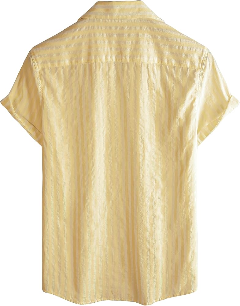 تصميم أنيق: يتميز القميص ذو الياقة الكوبية بتصميم مخطط عمودي وجيب واحد على الصدر، مما يضيف لمسة من الموضة العصرية إلى خزانة ملابسك، وحاشية منحنية تخلق تأثيرًا نحيفًا.