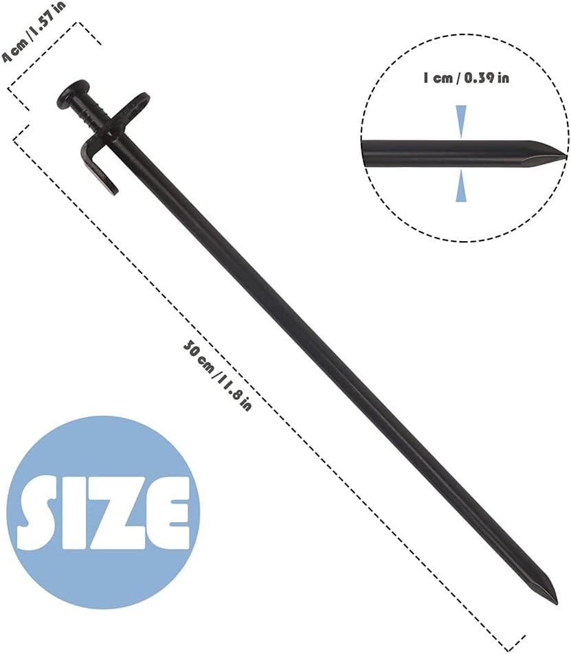 Special tent stakes are designed as a multi-use tool for nailing large tents, canopies, tarps to the ground while outdoor camping and picnic,Long and large stakes can make your tents safe.