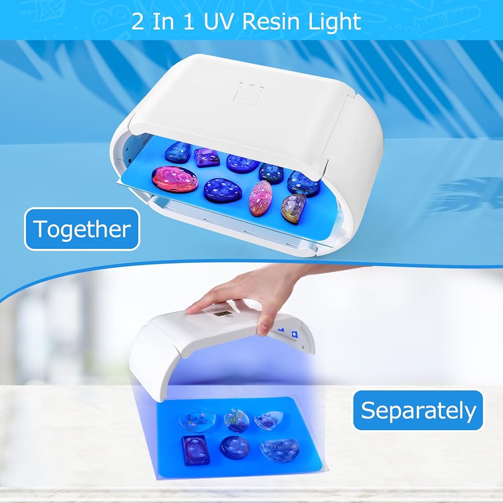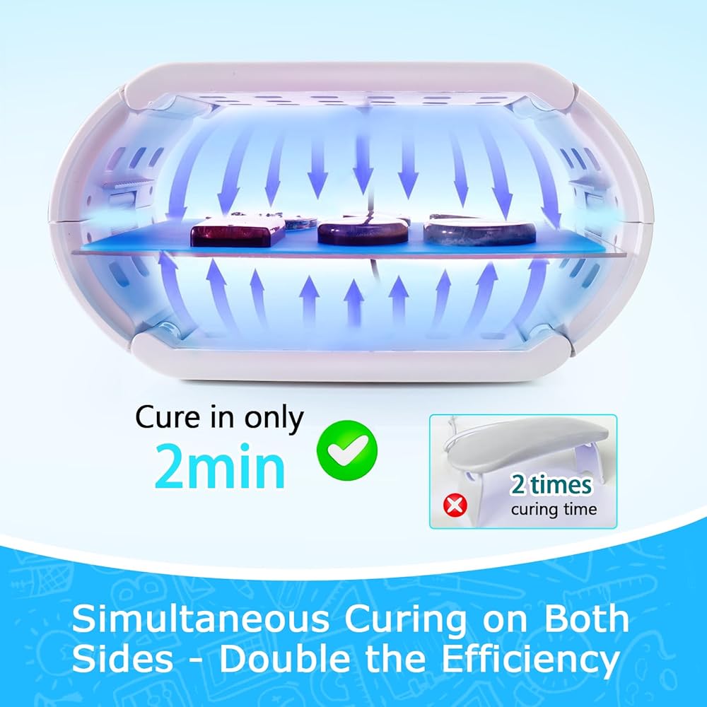 • ✅2 IN 1 DOUBLE SIDED CURING: This uv resin light adopts double sided curing design, the upper and lower sides can be cured at the same time and uniformly, compared with the traditional uv resin lamp, it greatly improves the curing efficiency and shortens the curing time.