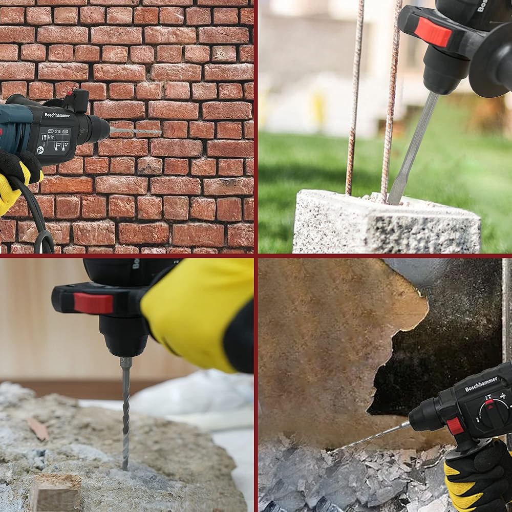 بيهابي 17 قطعة من لقم مثقاب المطرقة الدوارة اس دي اس بلس ومجموعات ازميل، مجموعة لقم مثقاب ومطرقة دوارة من الكربيد وازاميل للخرسانة والاسمنت والطوب والحجر مع حقيبة تخزين