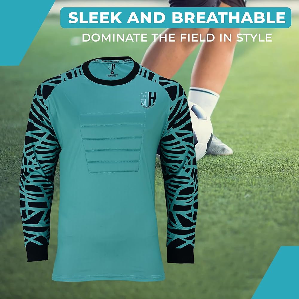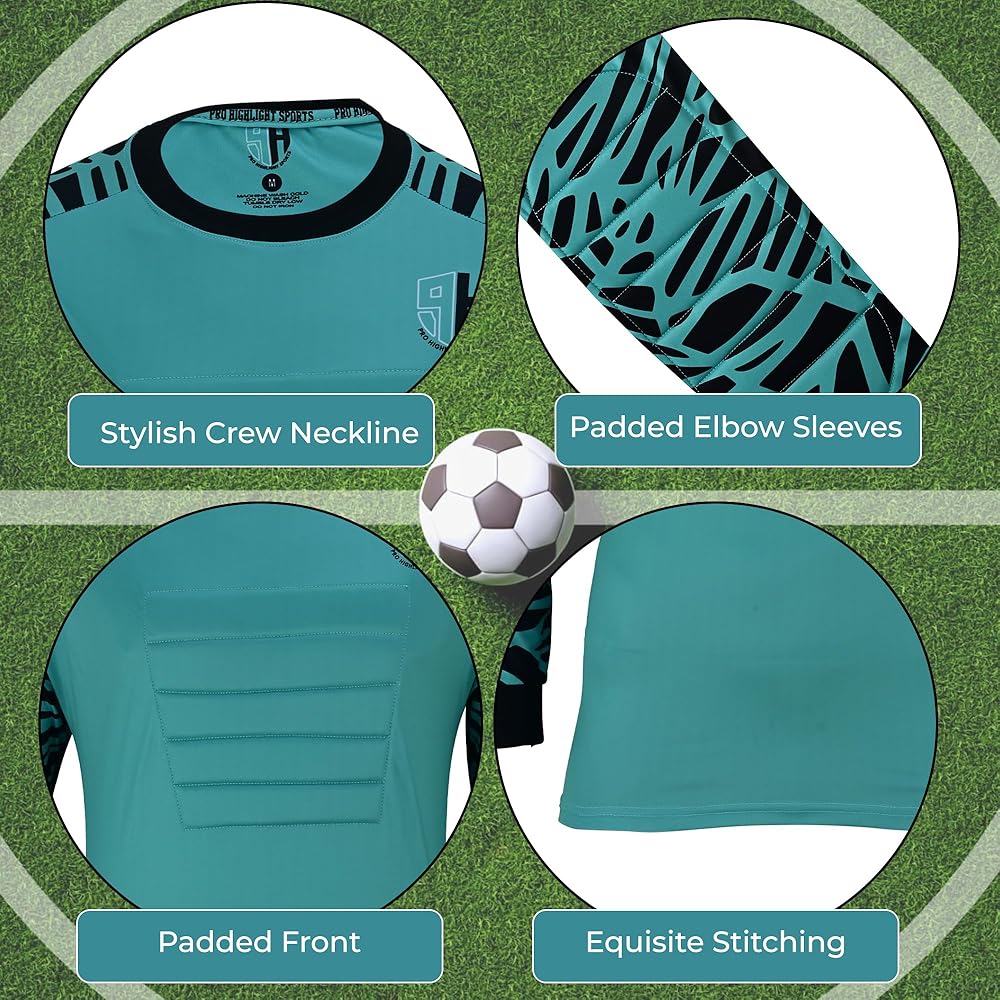 Ultimate comfort youth goalie jersey: Pro highlight sports goalkeeper jersey men is made with 100% breathable material that will always make you feel cool, dry, and very light during the game, youth goalie shirts engineered for optimal airflow and crafted with high-quality materials to enhance your performance seamlessly