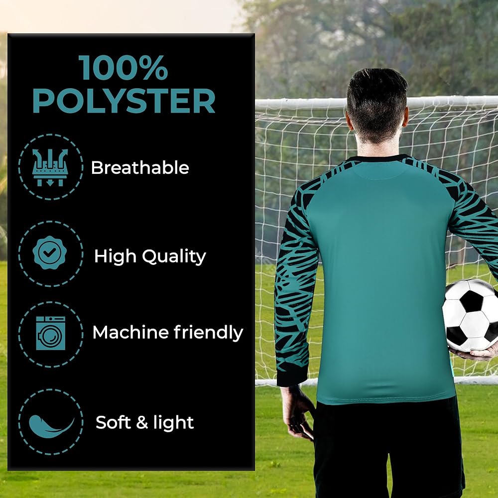Enhanced protection goalkeeper padded shirt: Made with 100% Polyester fabric that stands out on the field & extra Padding on the chest and Elbow of the padded goalie jersey youth to protect your body when you must dive to make that amazing save that will keep your team in the game