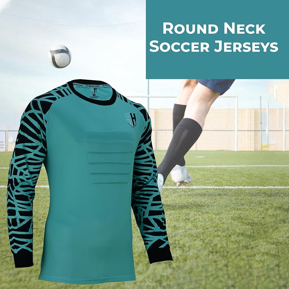 Crew Neck Design mens goalie jersey: This long sleeve soccer jersey for men features a crewneck design for complete coverage and comfort during play. Goalkeeper shirt full-neck construction offers a secure fit, allowing players to focus solely on their game