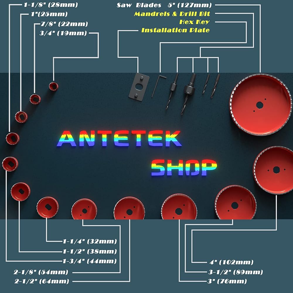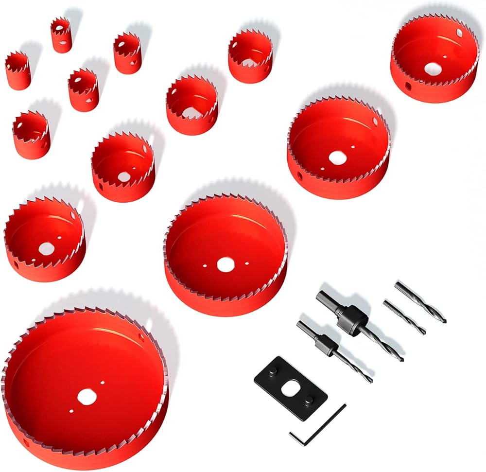 ❤【مجموعة منشار ثقب 19 قطعة: 】 طقم منشار ثقب Antetek يحتوي على 13 منشار ثقب بحجم 3/4 بوصة (19 مم)، 7/8 بوصة (22 مم)، 1-1/8 بوصة (28 مم)، 1-1 /4 بوصة (32 ملم)، 1-1/2 بوصة (38 ملم)، 1-3/4 بوصة (44 ملم)، 2 بوصة (54 ملم)، 2-1/2 بوصة (64 ملم)، 3 بوصة (76 ملم)، 3 -1/2 بوصة (89 مم)، 4 بوصة (102 مم)، 5 بوصة (127 مم)، أقصى عمق للقطع 25 مم، قطعتان مماسك، قطعتان لقم الثقب لسهولة الاستبدال، قطعة واحدة لوحة تركيب، قطعة واحدة مفتاح سداسي. هذه الأدوات موجودة لتلبية جميع احتياجاتك.