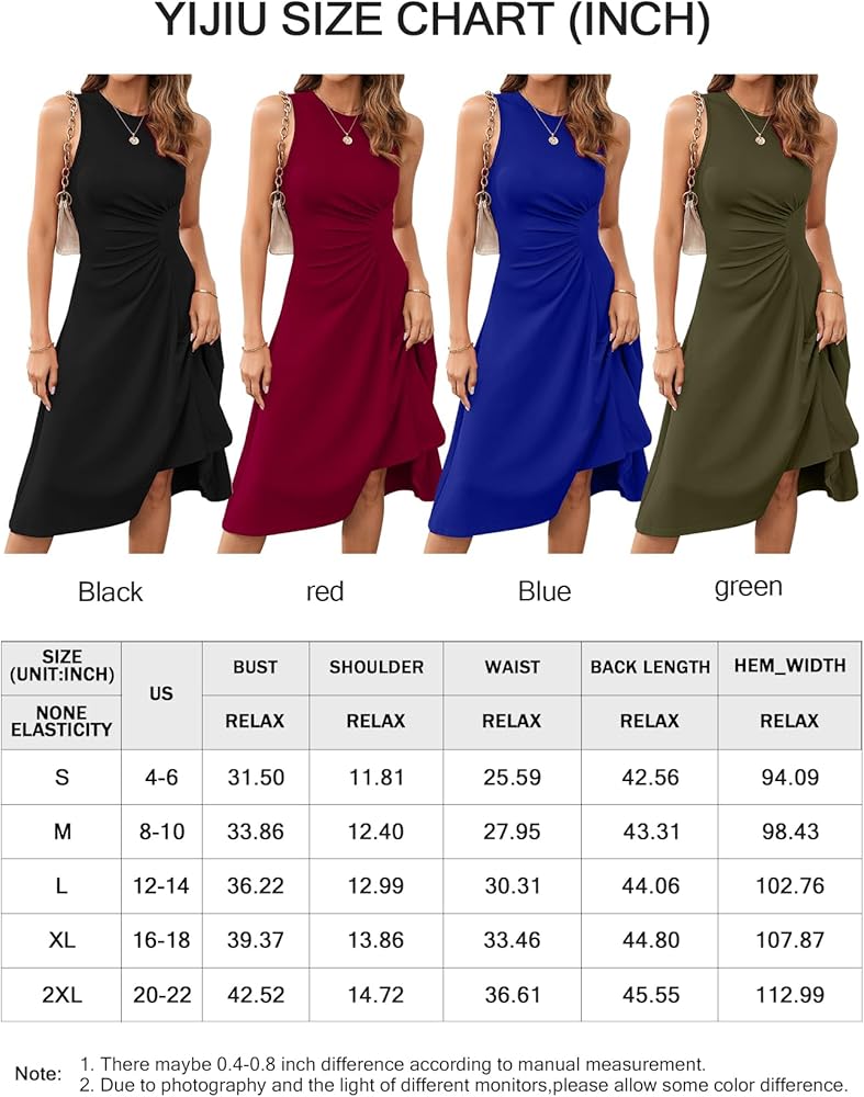【المميزات】 يتميز الفستان متوسط الطول للسيدات بأنه مثير بدون أكمام، رقبة دائرية، لون سادة بسيط، جانب مكشكش، مطوي، خط على شكل حرف A، حاشية غير منتظمة، متزلج فريد من نوعه، مقاس نحيف، فستان صيفي بدون أكمام، حاشية غير متماثلة، فستان متوهج جميل مما يجعلك تبدين أنيقة وأنيقة.