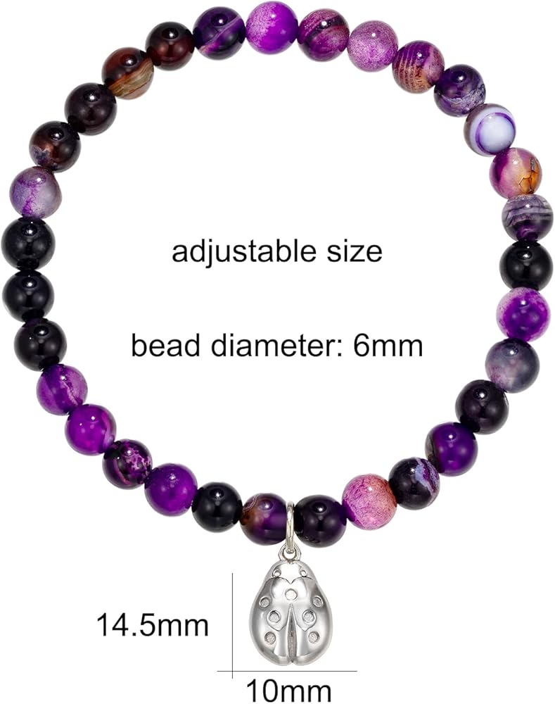 المواد: هذا السوار مصنوع من 925 خرزة جمشت مع حلية خنفساء من الفولاذ المقاوم للصدأ، والتي تم صقلها يدويًا لخلق مظهر لامع وجذاب.