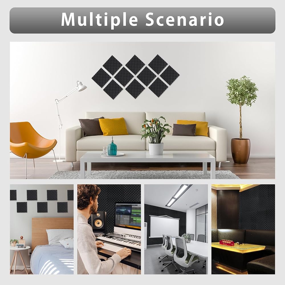 • [مجموعة واسعة من التطبيقات] الألواح الإسفنجية المقاومة للصوت للجدار مناسبة لاستوديوهات التسجيل، والاستوديوهات الشخصية، والمكاتب، وغرف المنزل، وغرف البث المباشر، والمسارح الخاصة، أو أي بيئة تتطلب جودة الصوت وامتصاص الضوضاء. كما أنها مناسبة لصندوق امتصاص الصوت DIY.
