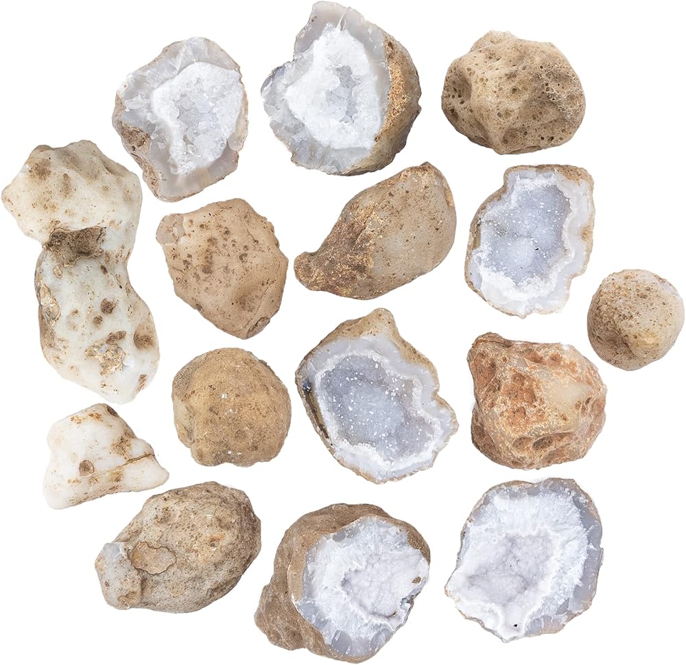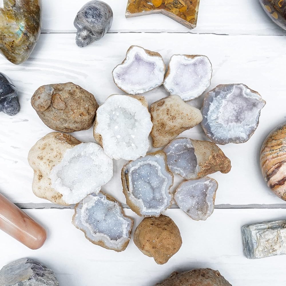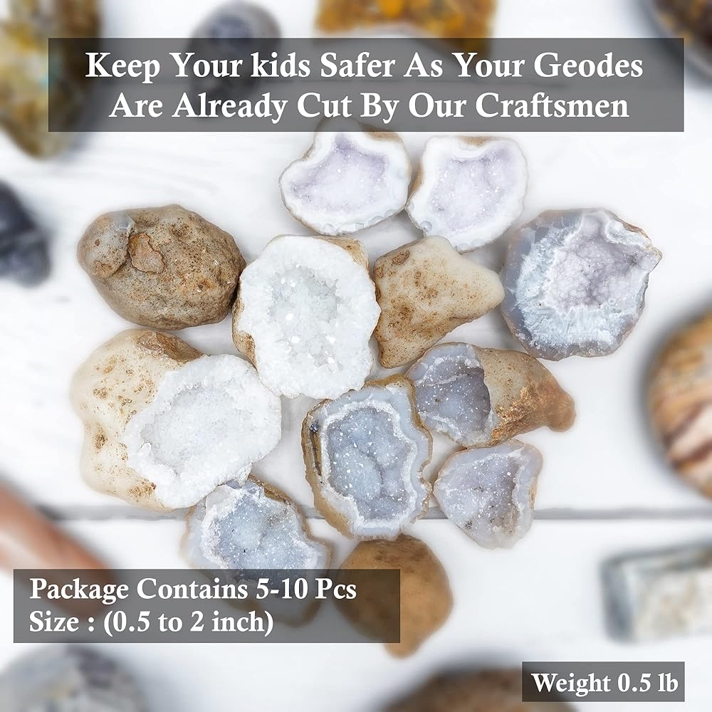 افتح الجيود الكريستالية الكراك: ستحتوي الحزمة الخاصة بك على عدة جيود صغيرة. إجمالي القطع (5-10 قطع) تحت وزن 0.5 رطل، فقط افتح الجيود المتشقق واستمتع بالبلورات المذهلة داخل الجيود.