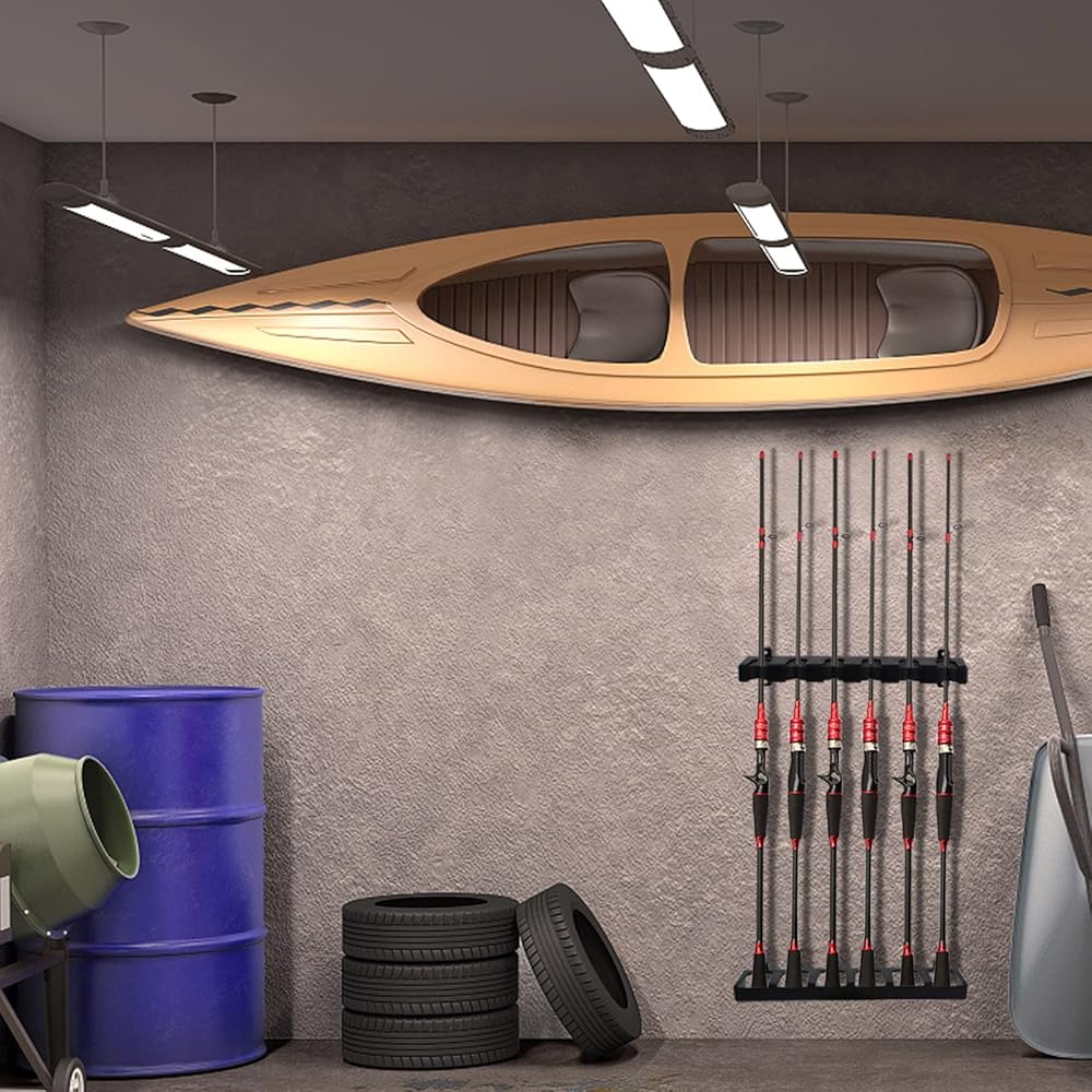 【الاستخدام على نطاق واسع】يمكن لحامل صنارة صيد القارب أن يحمل معظم قضبان الصيد، وحوامل القضبان للجراج تعرض قضيبك بالكامل وتحافظ على قضيبك محميًا جيدًا. مناسبة للمشاهد المختلفة مثل الحانات والنوادي وغرف المعيشة والجراج وما إلى ذلك.