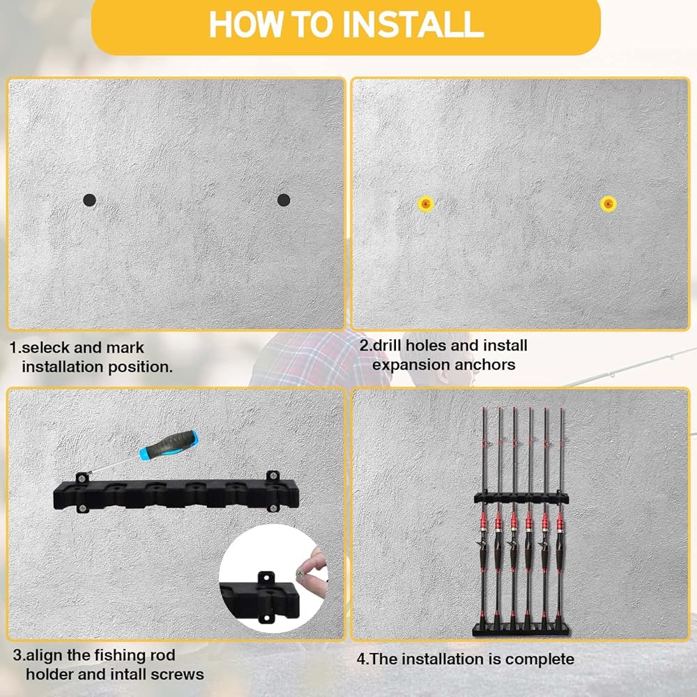 【سهلة التجميع】تأتي مجموعة حامل قضيب الصيد لباب المرآب مع 12 براغي، و12 براغي توسيع بلاستيكية للتركيب السهل والسريع، تحتاج فقط إلى تثبيت البراغي على الحائط لتثبيت الدعامة على الحائط. لم يستغرق حامل العمود أكثر من خمس دقائق لتثبيت حامل قضيب الحائط.