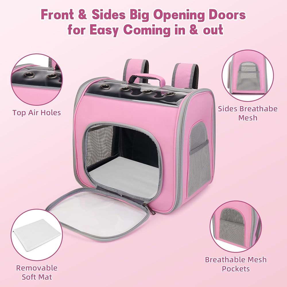 رؤية واسعة للخارج - مصممة بتصميم شبكي شفاف قابل للتهوية على الجانب الأيسر والأيمن، وتصميم شفاف على الجانب الأمامي، مما يسمح لحيواناتك الأليفة برؤية واضحة للمناطق المحيطة بها، والاستمتاع بمناظر رائعة في الهواء الطلق مع القطط والجراء المحبوبة وما إلى ذلك.