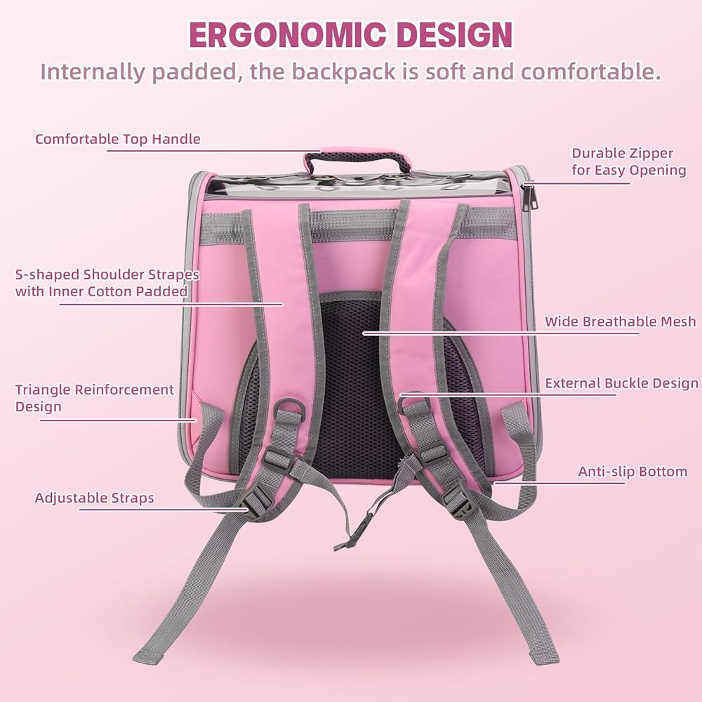 هيكل متين - حقيبة ظهر الحيوانات الأليفة مصنوعة من مقبض علوي متين، يمكن حملها باليد بسهولة وراحة؛ لوح سفلي متين، أفضل لدعم قططك أثناء المشي أو التنزه سيرًا على الأقدام أو السفر. قفل أمان، يحمي الحيوانات الأليفة بشكل أفضل من الابتعاد عن حقيبة الظهر.
