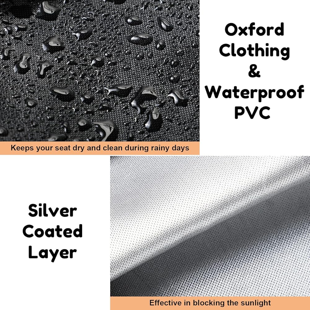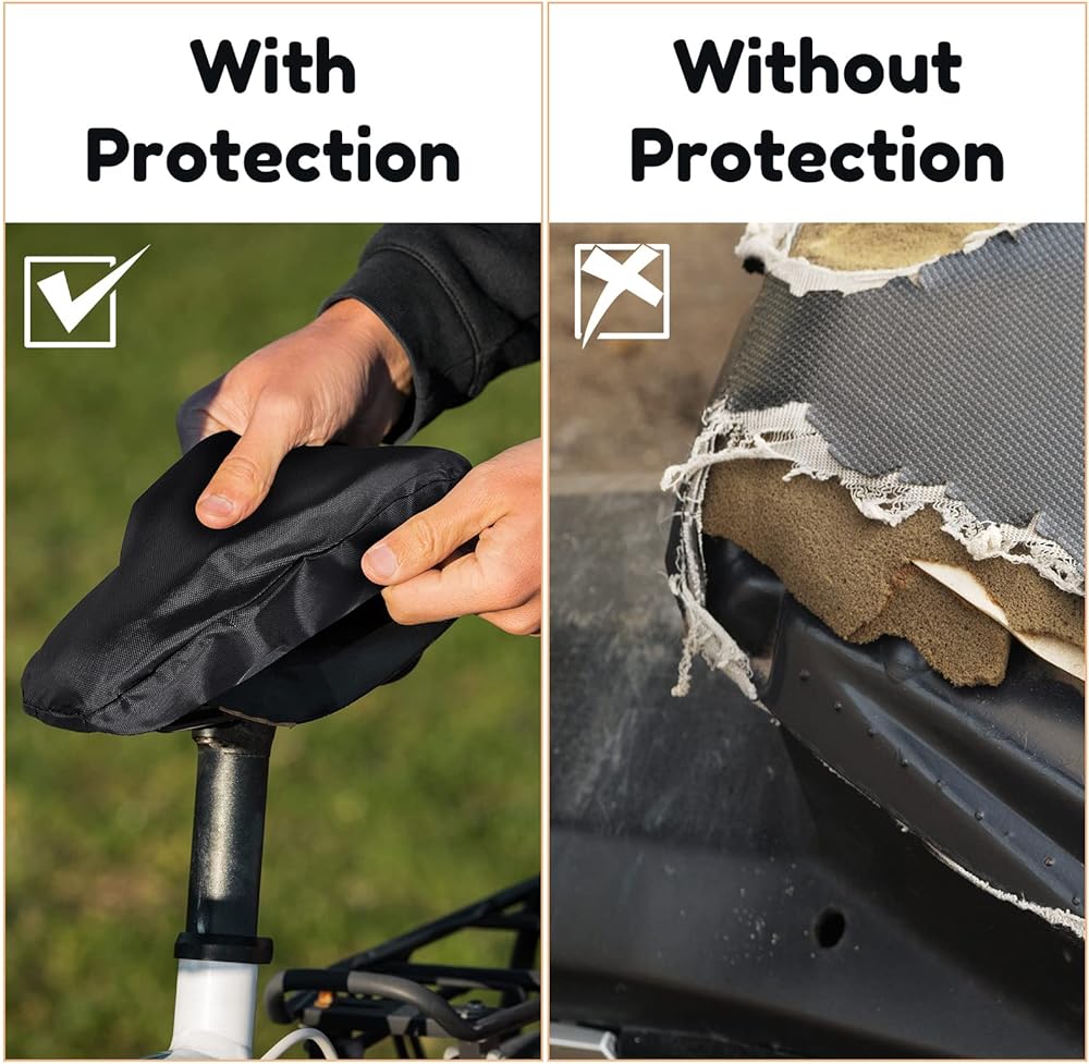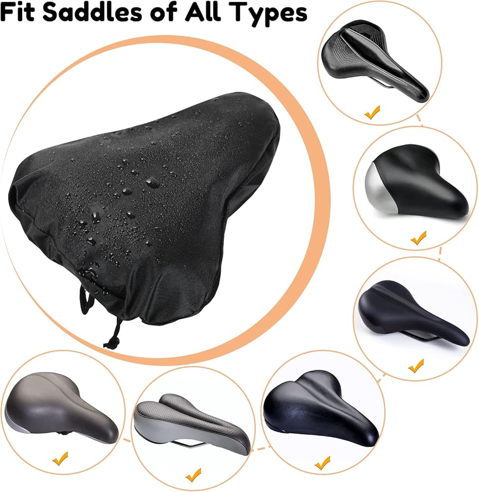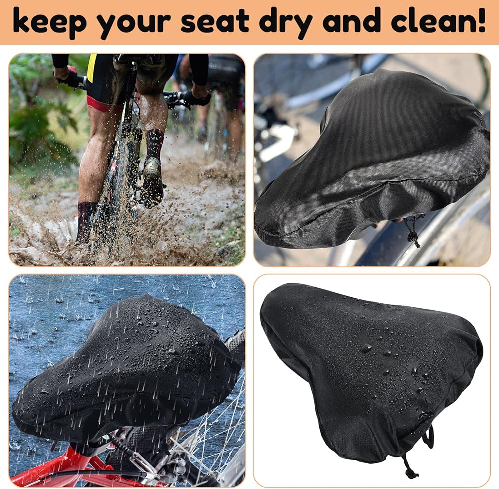 The waterproof saddle cover is made of abrasion and tear resistant fabric, with PVC layer and polyurethane coating, it can keep your seat dry for a long time.