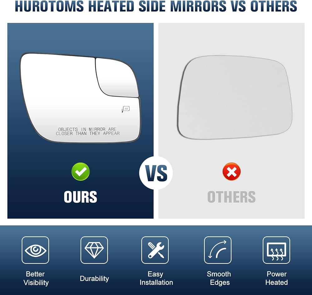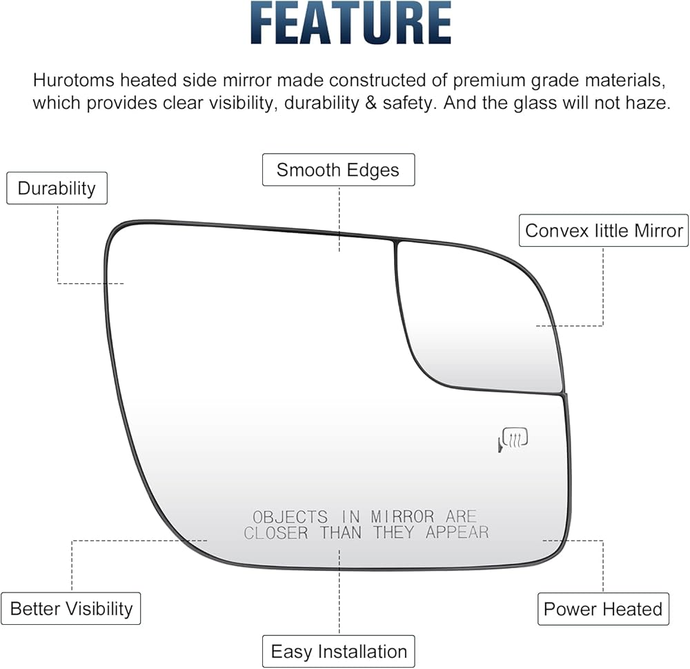- ☺زجاج مرآة متوافق مع -- زجاج مرآة الرؤية الخلفية الخارجي من Hurotoms يتطابق مع زجاج مرآة الرؤية الخلفية الأصلي لسيارة Ford Explorer 2011-2017.