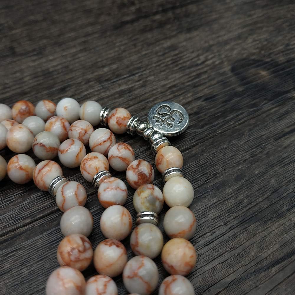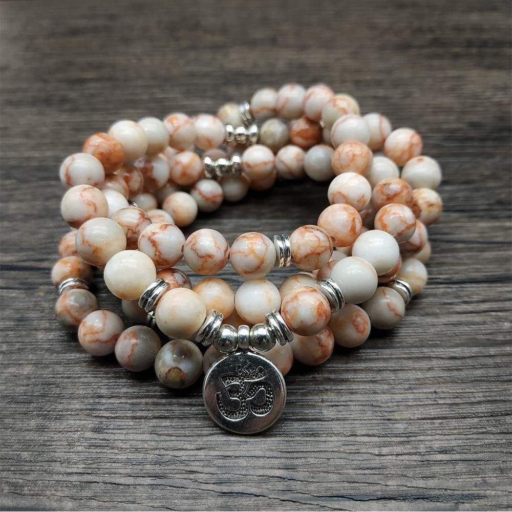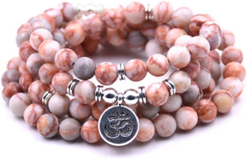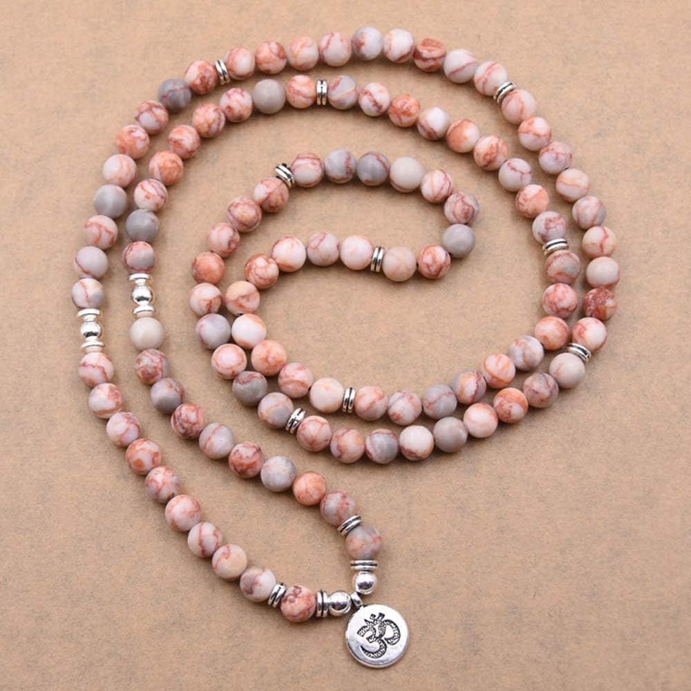 108 الخرز الطبيعي مالا اليوغا مجوهرات التأمل الخرز سوار قلادة مع سحر أوم (الخط الأحمر العقيق)