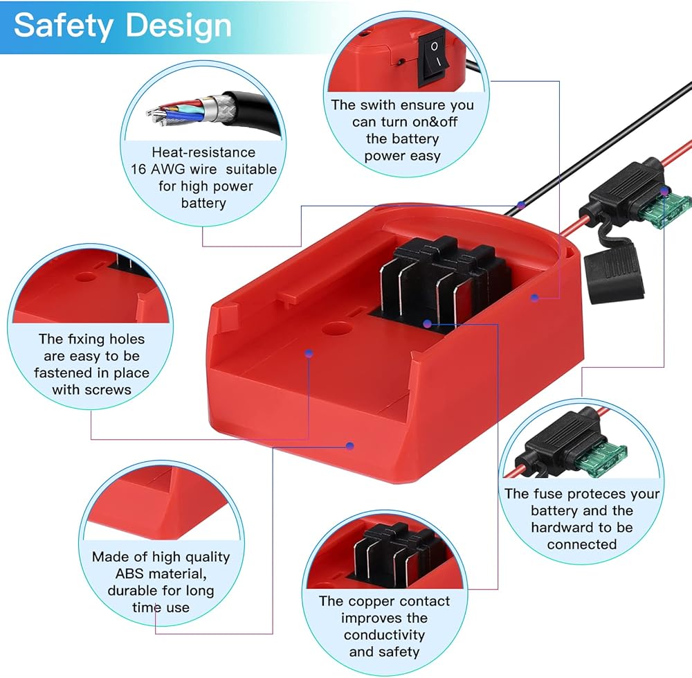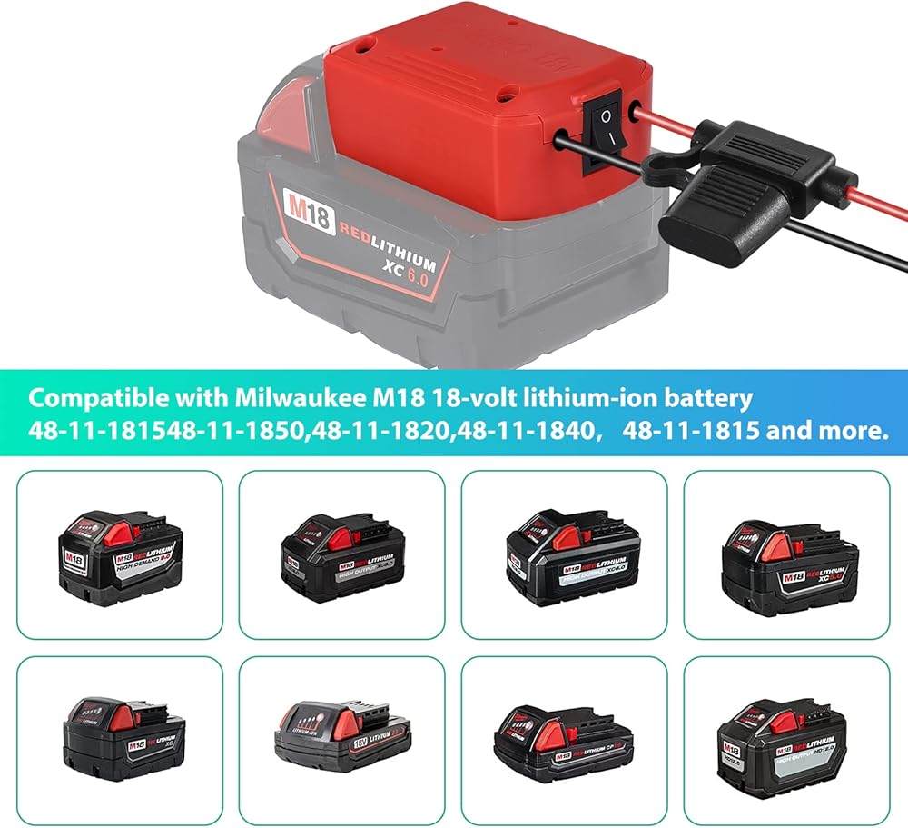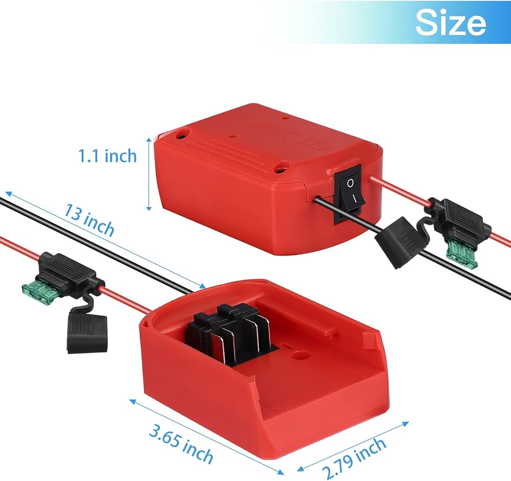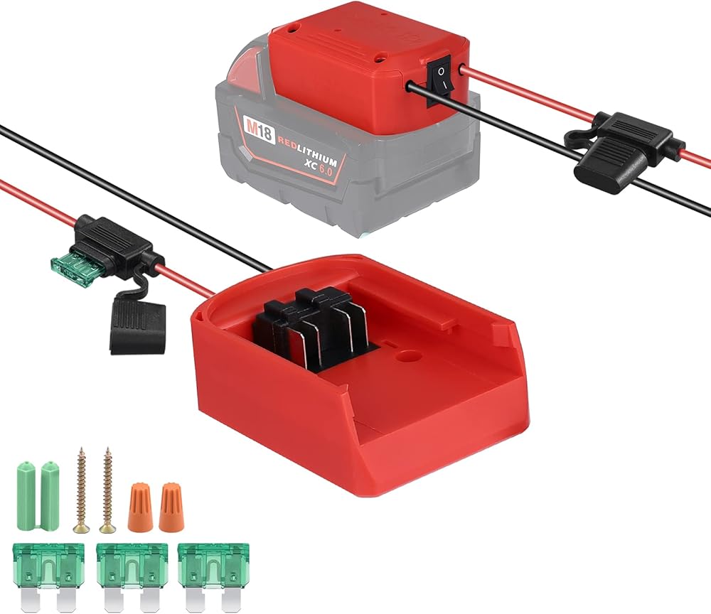 محول عجلات الطاقة biuonga لبطارية ميلووكي 18 فولت M18 مجموعة تحويل البطارية لعجلات الطاقة مع مفتاح ومحطات أسلاك وحامل صمامات تبديل مجموعة أسلاك 16AWG مع صمامات 30 أمبير، أحمر